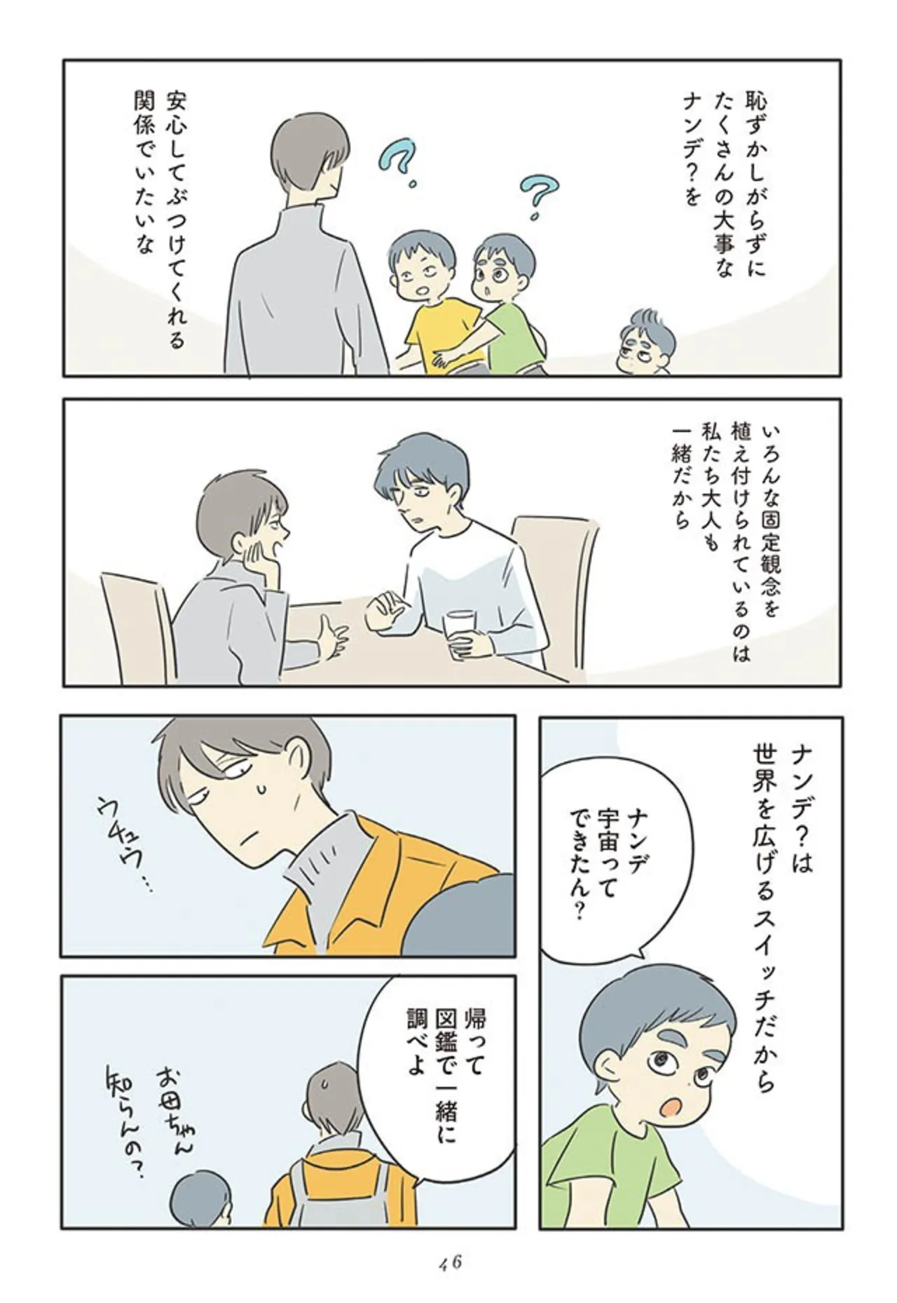 子どもたちは「ナンデ?」がいっぱい。完璧な回答を目指さずに、母が心に決めたこと/いってらっしゃいのその後で⑦ マンガ 公開日:2025/10/3 この連載を最初から読む→ <第8回に続く> 本作品をAmazon(電子)で読む > 本作品をRenta!で読む > 本作品をebookjapanで読む > 本作品をBOOK☆WALKERで読む > « 1 2 あわせて読みたい 【漫画】『いってらっしゃいのその後で』を第1回から読む 【漫画】『娘をグルーミングする先生』を読む 【漫画】『よいたん3歳、ときどき先輩。』を読む 最新マンガと話題の書籍を無料で試し読み! 前の回 一覧 人気の連載 次の回 いってらっしゃいのその後で (コミックエッセイ) Amazon(電子) Amazon 楽天(電子) Renta! ebookjapan ブックライブ コミックシーモア DMMブックス U-NEXT いってらっしゃいのその後で 転がり続ける毎日編 (コミックエッセイ) Amazon(電子) Amazon 楽天(電子)