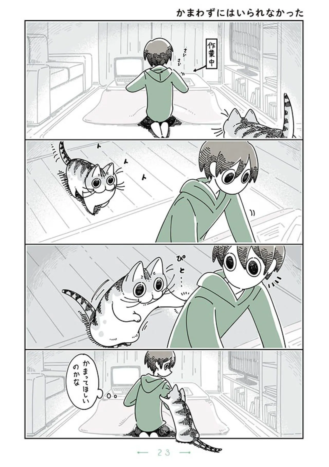 「今はあそべないんだ」作業中の飼い主がかまってほしい猫にスリスリされまくった結果/夜は猫といっしょ3(34) マンガ 公開日:2025/11/11 この連載を最初から読む→ 『夜は猫といっしょ3』(キュルZ/KADOKAWA)第34回【全63回】 一人暮らしのフータのもとに、妹と一緒にやって来た猫のキュルガ。これまで猫と関わることなく生きてきたフータにとって、キュルガとの生活は新しい発見だらけで、毎日が不思議なことや楽しいことばかり。猫の不思議な生態に興味津々のフータは、キュルガのかわいい魅力に惹き込まれ、気が付くとスマホの写真フォルダが猫でいっぱいに。猫がかわいいことは知っていたけど、ここまでとは思っていなかった! かわいい猫とのリアルな日常を描いた『夜は猫といっしょ』(1~5巻)にて、キュルガのかわいさにほっこり癒されてみませんか? 【30日間無料】Amazonの読み放題をチェック > 本作品をAmazon(電子)で読む > 本作品をRenta!で読む > >> 次のページに続く 1 2 > あわせて読みたい 【漫画】『夜は猫といっしょ(1~5巻)』を第1回から読む 【漫画】『ママ5年目でがんなんて 手に入れた卵子と失った味覚』を読む 【漫画】『ねこようかい』を読む 最新マンガと話題の書籍を無料で試し読み! 前の回 一覧 人気の連載 次の回 夜は猫といっしょ 1 (コミックエッセイ) Amazon(電子) Amazon 楽天(電子) Renta! ebookjapan ブックライブ コミックシーモア DMMブックス U-NEXT 夜は猫といっしょ 2 (コミックエッセイ) Amazon(電子) Amazon 楽天(電子) 夜は猫といっしょ 3 (コミックエッセイ) Amazon(電子) Amazon 楽天(電子) 夜は猫といっしょ 4 (コミックエッセイ) Amazon(電子) Amazon 楽天(電子) 夜は猫といっしょ 5 (コミックエッセイ) Amazon(電子) Amazon 楽天(電子) 夜は猫といっしょ 7 (コミックエッセイ) Amazon(電子) Amazon 楽天(電子)