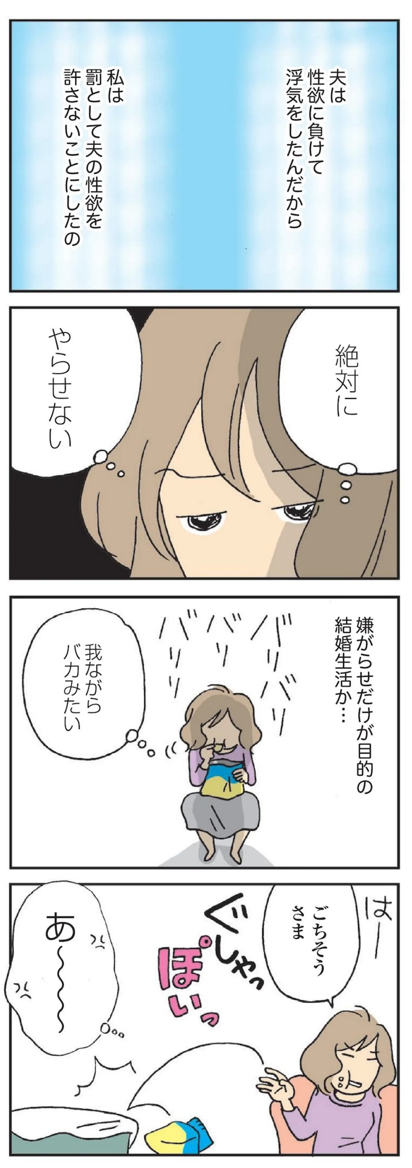 絶対にやらせない。夫の浮気がきっかけで、嫌がらせだけが結婚生活の目的に/私の穴がうまらない⑱ マンガ 公開日:2025/10/14 この連載を最初から読む→ <第19回に続く> 本作品をAmazon(電子)で読む > 本作品をRenta!で読む > 本作品をebookjapanで読む > 本作品をBOOK☆WALKERで読む > « 1 2 3 あわせて読みたい 【漫画】『私の穴がうまらない』を第1回から読む 【漫画】『ややこしい蜜柑たち』を読む 【漫画】『夫と心が通わない カサンドラ症候群で笑えなくなった私が離婚するまでの話』を読む 最新マンガと話題の書籍を無料で試し読み! 前の回 一覧 人気の連載 次の回 私の穴がうまらない (コミックエッセイ) Amazon(電子) Amazon 楽天(電子) Renta! ebookjapan ブックライブ コミックシーモア DMMブックス U-NEXT