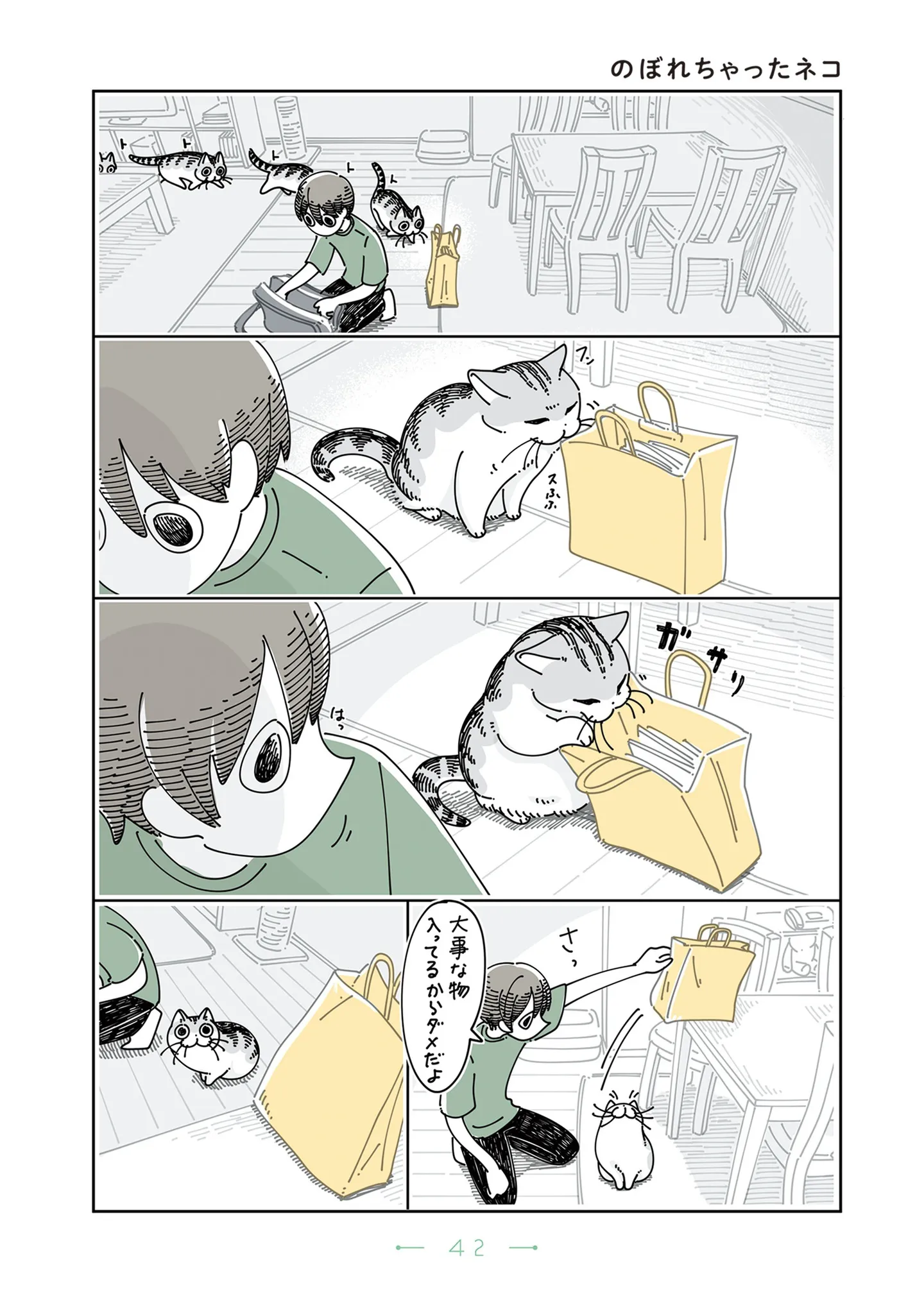 紙袋に興味津々の猫。高いところに移動させても凄まじいジャンプ力でお手の物/夜は猫といっしょ5(57) マンガ 公開日:2025/12/4 この連載を最初から読む→ 『夜は猫といっしょ5』(キュルZ/KADOKAWA)第57回【全63回】 一人暮らしのフータのもとに、妹と一緒にやって来た猫のキュルガ。これまで猫と関わることなく生きてきたフータにとって、キュルガとの生活は新しい発見だらけで、毎日が不思議なことや楽しいことばかり。猫の不思議な生態に興味津々のフータは、キュルガのかわいい魅力に惹き込まれ、気が付くとスマホの写真フォルダが猫でいっぱいに。猫がかわいいことは知っていたけど、ここまでとは思っていなかった! かわいい猫とのリアルな日常を描いた『夜は猫といっしょ』(1~5巻)にて、キュルガのかわいさにほっこり癒されてみませんか? 【30日間無料】Amazonの読み放題をチェック > 本作品をAmazon(電子)で読む > 本作品をRenta!で読む > >> 次のページに続く 1 2 > あわせて読みたい 【漫画】『夜は猫といっしょ(1~5巻)』を第1回から読む 【漫画】『娘をグルーミングする先生』を読む 【漫画】『鴻池剛と猫のぽんた ニャアアアン!』を読む 最新マンガと話題の書籍を無料で試し読み! 前の回 一覧 人気の連載 次の回 夜は猫といっしょ 1 (コミックエッセイ) 試し読み *電子書籍ストアBOOK☆WALKERへ移動します 夜は猫といっしょ 2 (コミックエッセイ) 試し読み *電子書籍ストアBOOK☆WALKERへ移動します 夜は猫といっしょ 3 (コミックエッセイ) 試し読み *電子書籍ストアBOOK☆WALKERへ移動します 夜は猫といっしょ 4 (コミックエッセイ) 試し読み *電子書籍ストアBOOK☆WALKERへ移動します 夜は猫といっしょ 5 (コミックエッセイ) 試し読み *電子書籍ストアBOOK☆WALKERへ移動します 夜は猫といっしょ 7 (コミックエッセイ) 試し読み *電子書籍ストアBOOK☆WALKERへ移動します