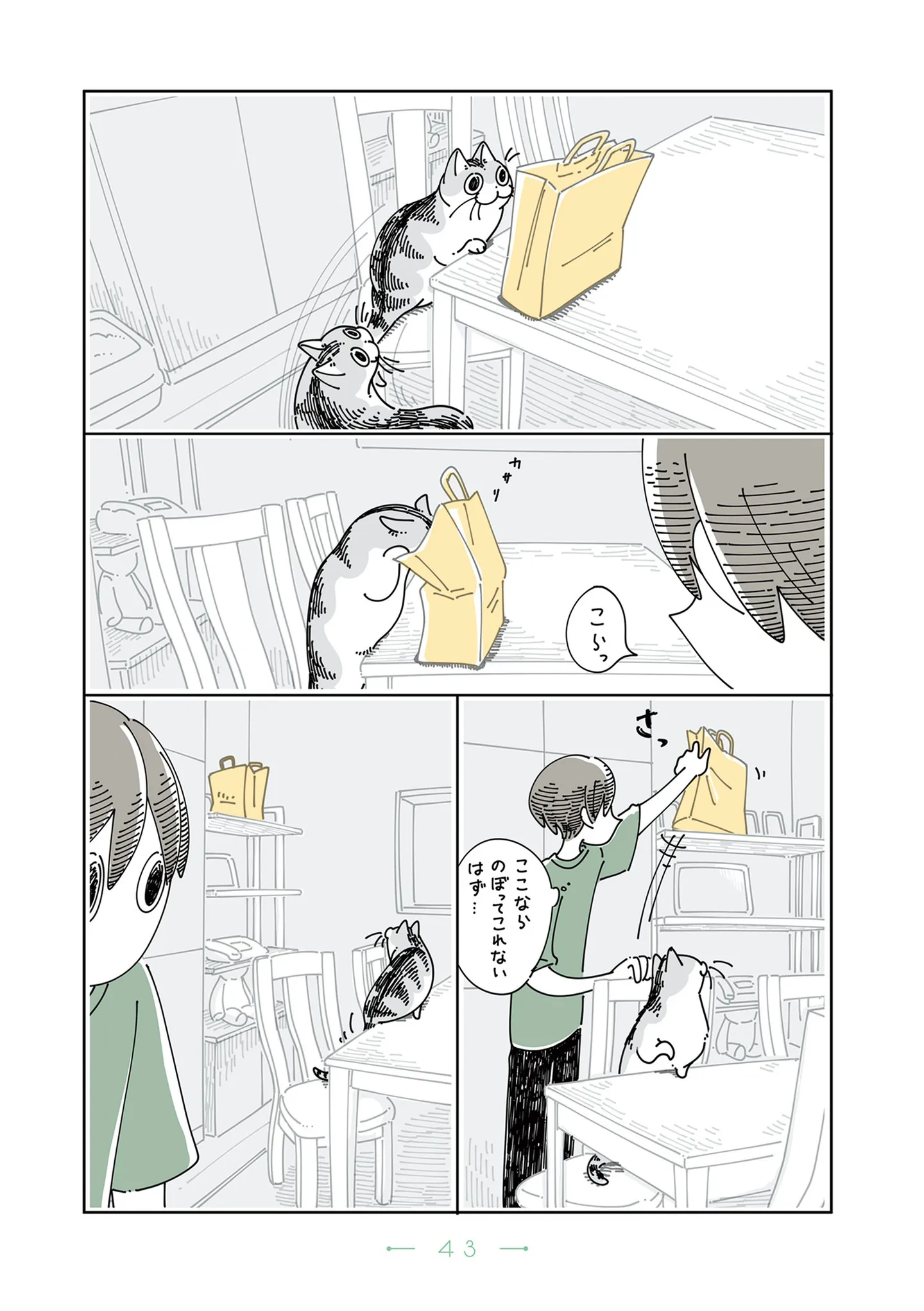 紙袋に興味津々の猫。高いところに移動させても凄まじいジャンプ力でお手の物/夜は猫といっしょ5(57) マンガ 公開日:2025/12/4 この連載を最初から読む→ <第58回に続く> 本作品をAmazon(電子)で読む > 本作品をRenta!で読む > 本作品をebookjapanで読む > 本作品をBOOK☆WALKERで読む > « 1 2 あわせて読みたい 【漫画】『夜は猫といっしょ(1~5巻)』を第1回から読む 【漫画】『娘をグルーミングする先生』を読む 【漫画】『鴻池剛と猫のぽんた ニャアアアン!』を読む 最新マンガと話題の書籍を無料で試し読み! 前の回 一覧 人気の連載 次の回 夜は猫といっしょ 1 (コミックエッセイ) 試し読み *電子書籍ストアBOOK☆WALKERへ移動します 夜は猫といっしょ 2 (コミックエッセイ) 試し読み *電子書籍ストアBOOK☆WALKERへ移動します 夜は猫といっしょ 3 (コミックエッセイ) 試し読み *電子書籍ストアBOOK☆WALKERへ移動します 夜は猫といっしょ 4 (コミックエッセイ) 試し読み *電子書籍ストアBOOK☆WALKERへ移動します 夜は猫といっしょ 5 (コミックエッセイ) 試し読み *電子書籍ストアBOOK☆WALKERへ移動します 夜は猫といっしょ 7 (コミックエッセイ) 試し読み *電子書籍ストアBOOK☆WALKERへ移動します