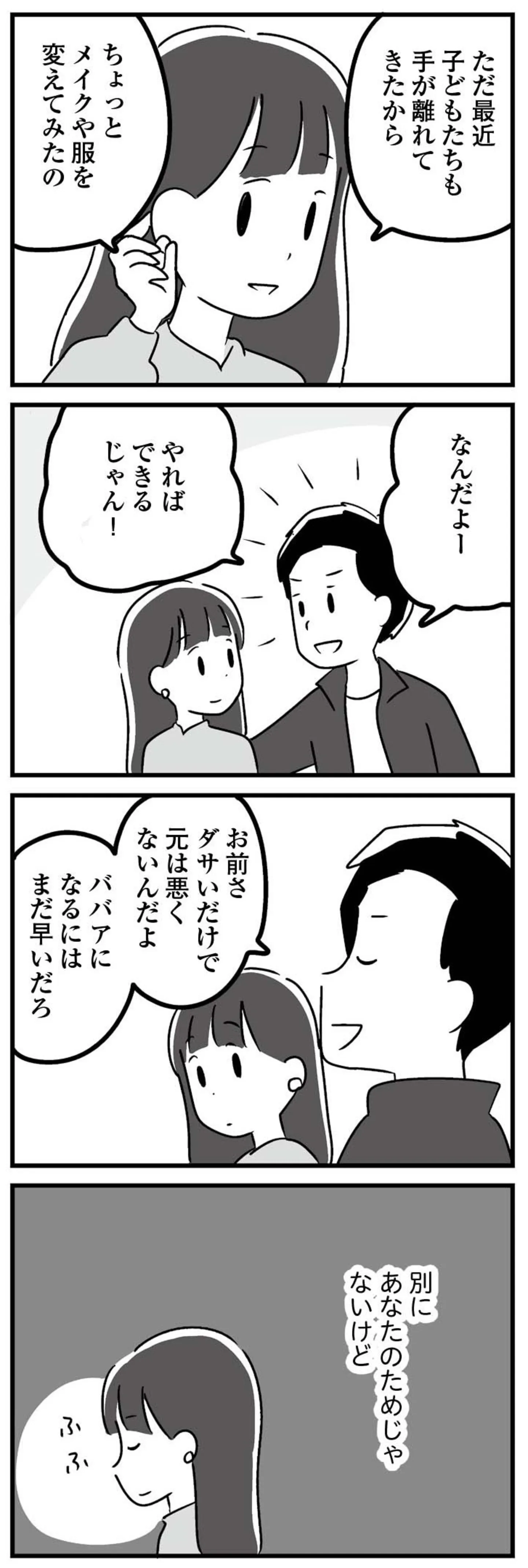 今までと違う服を着て夫に言いたいことも言う。PTAで知り合った男性の影響で自分に変化が…/恋するママ友たち 私以外も不倫してた⑯ マンガ 公開日:2025/10/18 この連載を最初から読む→ <第17回に続く> 本作品をAmazon(電子)で読む > 本作品をRenta!で読む > 本作品をebookjapanで読む > 本作品をBOOK☆WALKERで読む > « 1 2 3 4 あわせて読みたい 【漫画】『恋するママ友たち 私以外も不倫してた』を第1回から読む 【漫画】『今日もネコ様の圧が強い』を読む 【漫画】『パパ、浮気してるよ? 娘と二人でクズ夫を捨てます』を読む 最新マンガと話題の書籍を無料で試し読み! 前の回 一覧 人気の連載 次の回 恋するママ友たち 私以外も不倫してた (コミックエッセイ) Amazon 楽天(電子) Renta! ebookjapan ブックライブ コミックシーモア DMMブックス U-NEXT