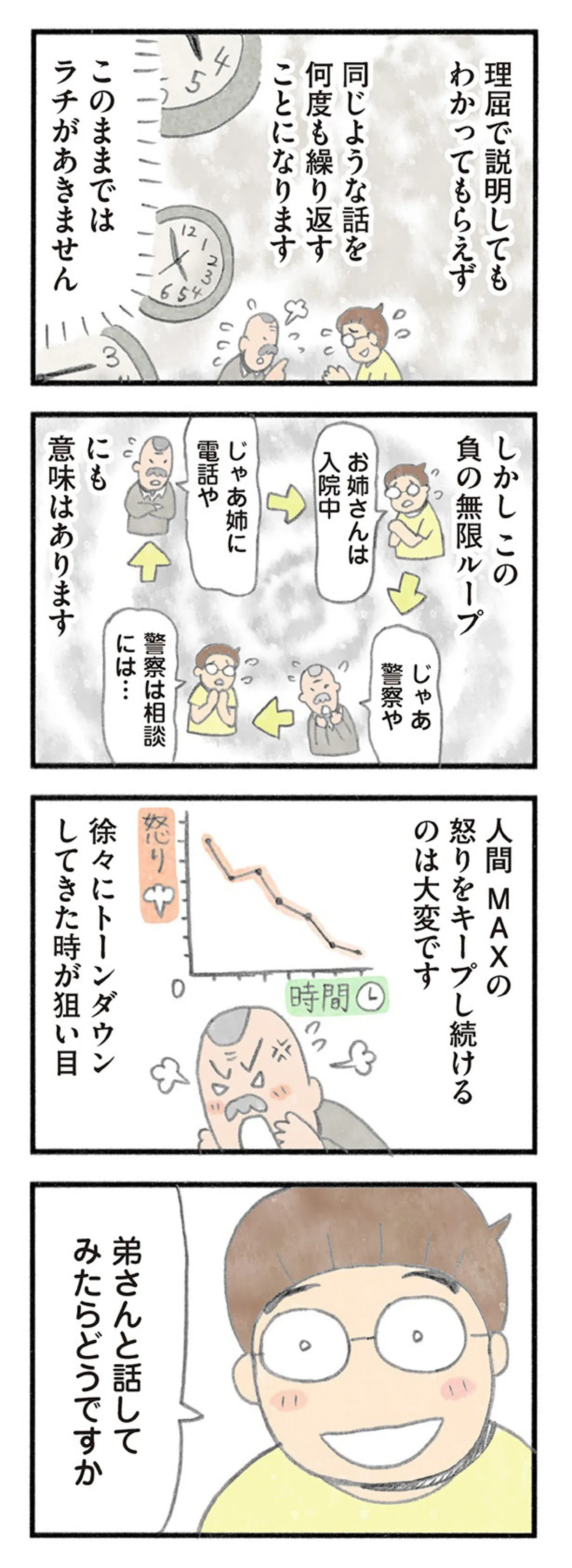 切り札は自慢の弟さん。怒り続けるお爺さんの気持ちを落ち着かせる方法とは?/認知症の人、その本当の気持ち マンガ 公開日:2025/11/6 この連載を最初から読む→ 本作品をAmazon(電子)で読む > 本作品をRenta!で読む > >> 次のページに続く « 1 2 3 > あわせて読みたい 【漫画】『認知症の人、その本当の気持ち 意味わからん行動にも理由がある』を第1回から読む 【漫画】『わたしが選んだ死産の話』を読む 【漫画】『健康以下、介護未満 親のトリセツ』を読む 【漫画】『78歳母とブロガー娘の 今日からいきなり介護です』を読む 【漫画】『お母さんは認知症、お父さんは老人ホーム 介護ど真ん中!親のトリセツ』を読む 最新マンガと話題の書籍を無料で試し読み! 前の回 一覧 人気の連載 次の回 認知症の人、その本当の気持ち 意味わからん行動にも理由がある (LScomic) Amazon 楽天(電子) Renta! ブックライブ DMMブックス