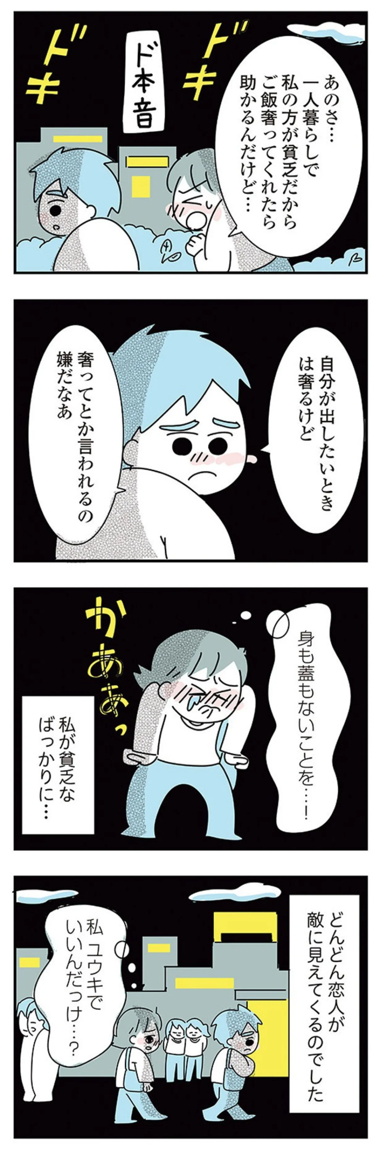 同棲を断ったくせに…マイペースな彼に不満が募る/子ども部屋おじさんの彼と一緒に住みたい私の100日間戦争⑦ マンガ 公開日:2025/10/12 この連載を最初から読む→ <第8回に続く> 本作品をAmazon(電子)で読む > 本作品をRenta!で読む > 本作品をebookjapanで読む > 本作品をBOOK☆WALKERで読む > « 1 2 3 あわせて読みたい 【漫画】『子ども部屋おじさんの彼と一緒に住みたい私の100日間戦争』を第1回から読む 【漫画】『娘をグルーミングする先生』を読む 【漫画】『午前3時の無法地帯』を読む 最新マンガと話題の書籍を無料で試し読み! 前の回 一覧 人気の連載 次の回 子ども部屋おじさんの彼と一緒に住みたい私の100日間戦争 (コミックエッセイ) Amazon(電子) Amazon 楽天(電子) Renta! ebookjapan ブックライブ コミックシーモア DMMブックス U-NEXT