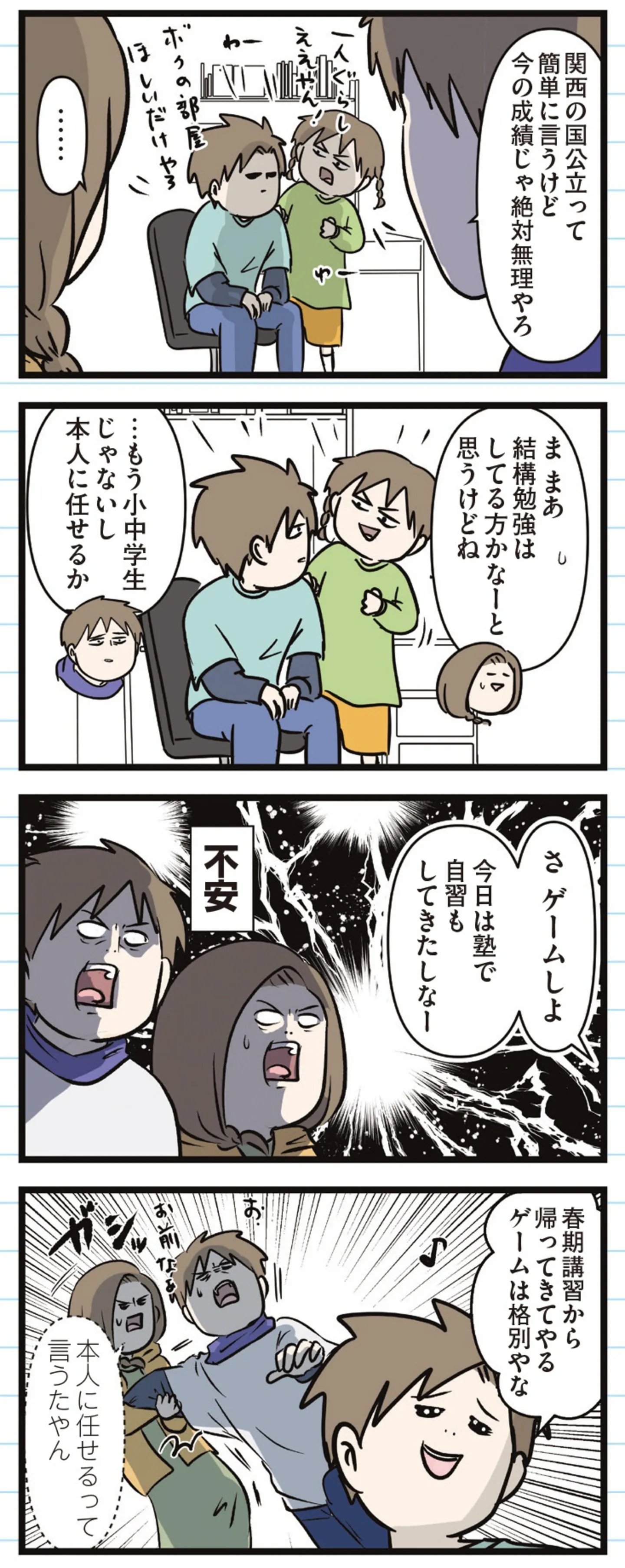 国公立に行きたいと言うが行動の伴わない息子に不安が募る/えむふじんがあらわれた! 家族で初めての大学受験③ マンガ 公開日:2025/10/11 この連載を最初から読む→ <第4回に続く> 本作品をAmazon(電子)で読む > 本作品をRenta!で読む > 本作品をebookjapanで読む > 本作品をBOOK☆WALKERで読む > « 1 2 あわせて読みたい 【漫画】『えむふじんがあらわれた! 家族で初めての大学受験 』を第1回から読む 【漫画】『妻が別れを告げる時』を読む 【漫画】『夫ですが会社辞めました』を読む 最新マンガと話題の書籍を無料で試し読み! 前の回 一覧 人気の連載 次の回 えむふじんがあらわれた! 家族で初めての大学受験 (コミックエッセイ) Amazon(電子) Amazon 楽天(電子) Renta! ebookjapan ブックライブ コミックシーモア DMMブックス U-NEXT