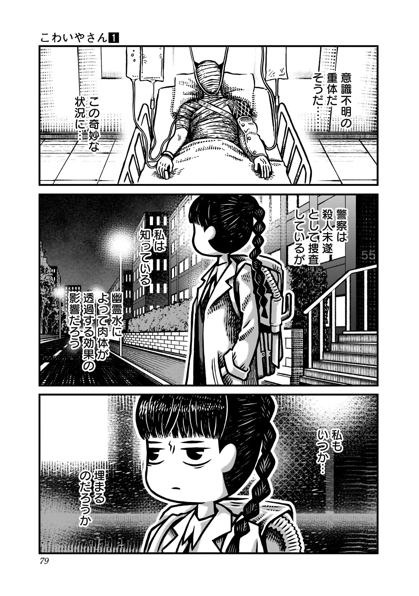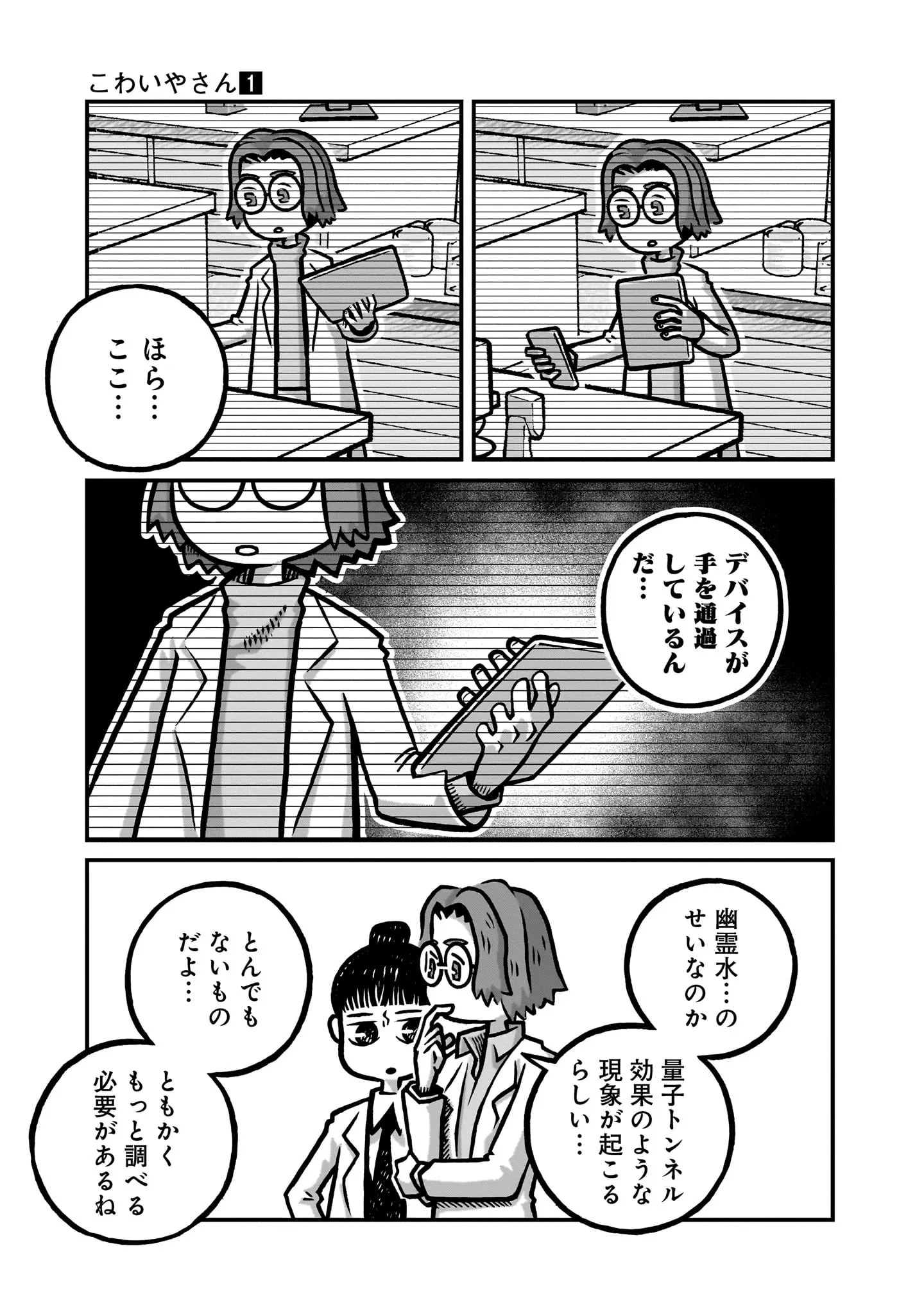 毎晩量が減る、幽霊が消えた現場で採取した水。その謎の性質を調べるためにビデオを回すと…/こわいやさん④ マンガ 公開日:2025/10/30 この連載を最初から読む→ Ⓒカメントツ/集英社 <続きは本書でお楽しみください> 本作品をAmazon(電子)で読む > 本作品をRenta!で読む > 本作品をebookjapanで読む > 本作品をBOOK☆WALKERで読む > « 1 2 3 4 あわせて読みたい 【本作品のレビューを読む】かわいらしく描かれたうさぎやかえるから急転直下! 「こわい箱」から語られる物語はあなたに新しいホラー体験をもたらす『こわいやさん』【書評】 【漫画】『こわいやさん』を第1回から読む 【漫画】『近畿地方のある場所について』を読む 人気のホラー作品を無料で試し読み 前の回 一覧 人気の連載 次の回 こわいやさん 1 (ジャンプコミックスDIGITAL) 試し読み *電子書籍ストアBOOK☆WALKERへ移動します