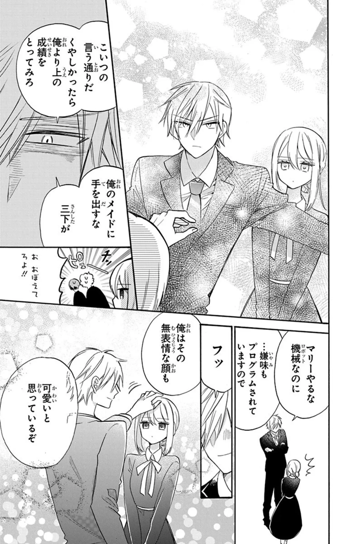 また、マリーとアーサー以外の登場人物が2人に負けないくらい個性豊かなのも大きな魅力の一つ。いたって真剣にマリーをロボットメイドへと仕立て上げた張本人のロイや、諸事情でマリーの代わりにと連れてこられた高性能(?)な人型ロボット「マリー2」、アーサーへ差し向けられた暗殺者でありながらも何かと2人の世話を焼いてしまう激強な刺客のノア、アーサー様ファンクラブの面々など、どのキャラをとってもどこか憎めない、目が離せない人たちばかり!