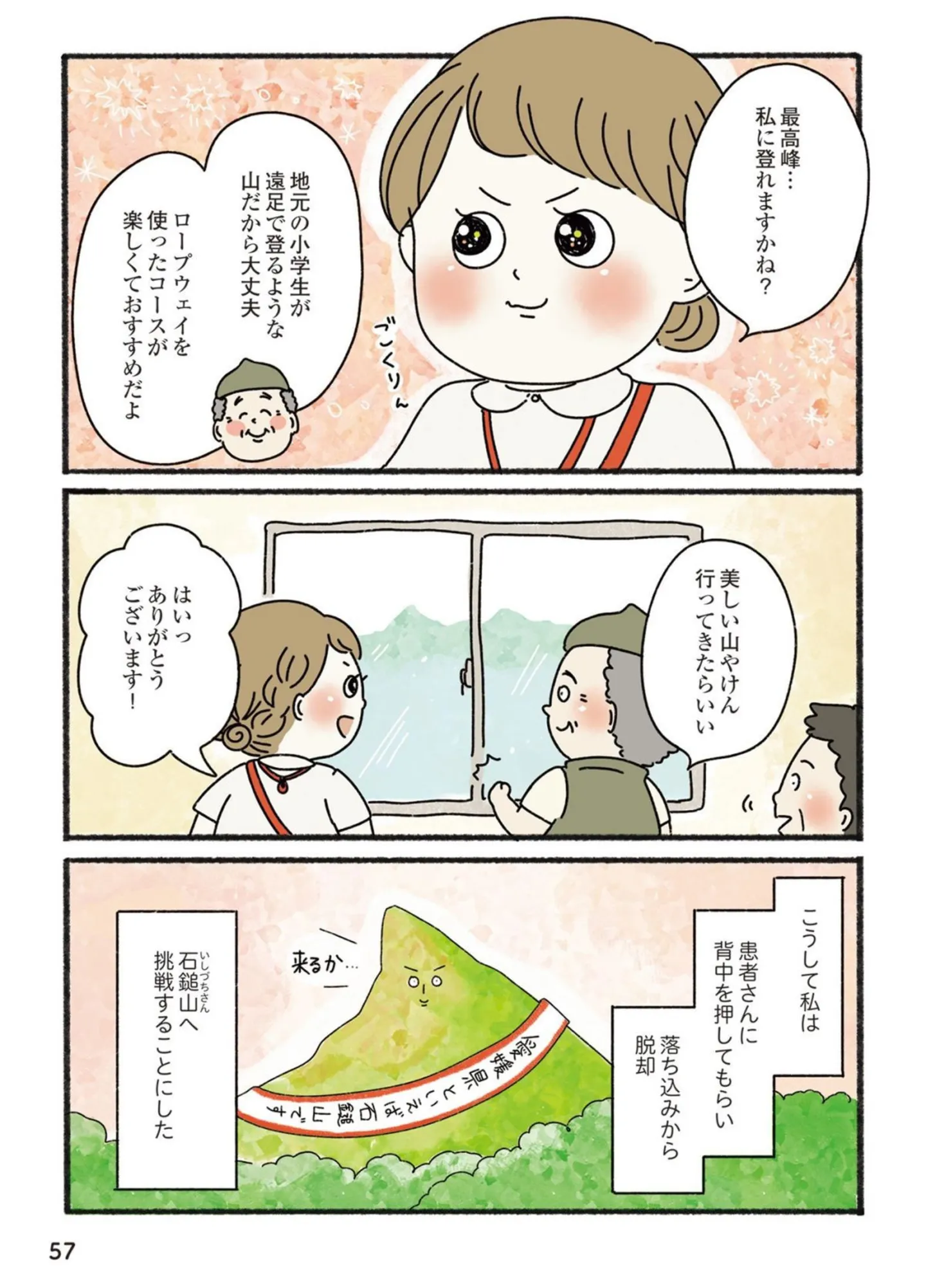 初登山失敗で落ち込む看護師。患者からの言葉で前向きな気持ちに/ゼロから山女子始めてみました⑥ マンガ 公開日:2025/10/16 この連載を最初から読む→ <第7回に続く> 本作品をAmazon(電子)で読む > 本作品をRenta!で読む > 本作品をebookjapanで読む > 本作品をBOOK☆WALKERで読む > « 1 2 3 あわせて読みたい 【漫画】『ゼロから山女子始めてみました』を第1回から読む 【漫画】『グランプリは私ですけど何か?~自己肯定モンスターのミスコン無双~』を読む 【漫画】『ひとりぐらしこそ我が人生』を読む 最新マンガと話題の書籍を無料で試し読み! 前の回 一覧 人気の連載 次の回 ゼロから山女子始めてみました (コミックエッセイ) Amazon(電子) Amazon 楽天(電子) Renta! ebookjapan ブックライブ コミックシーモア DMMブックス U-NEXT