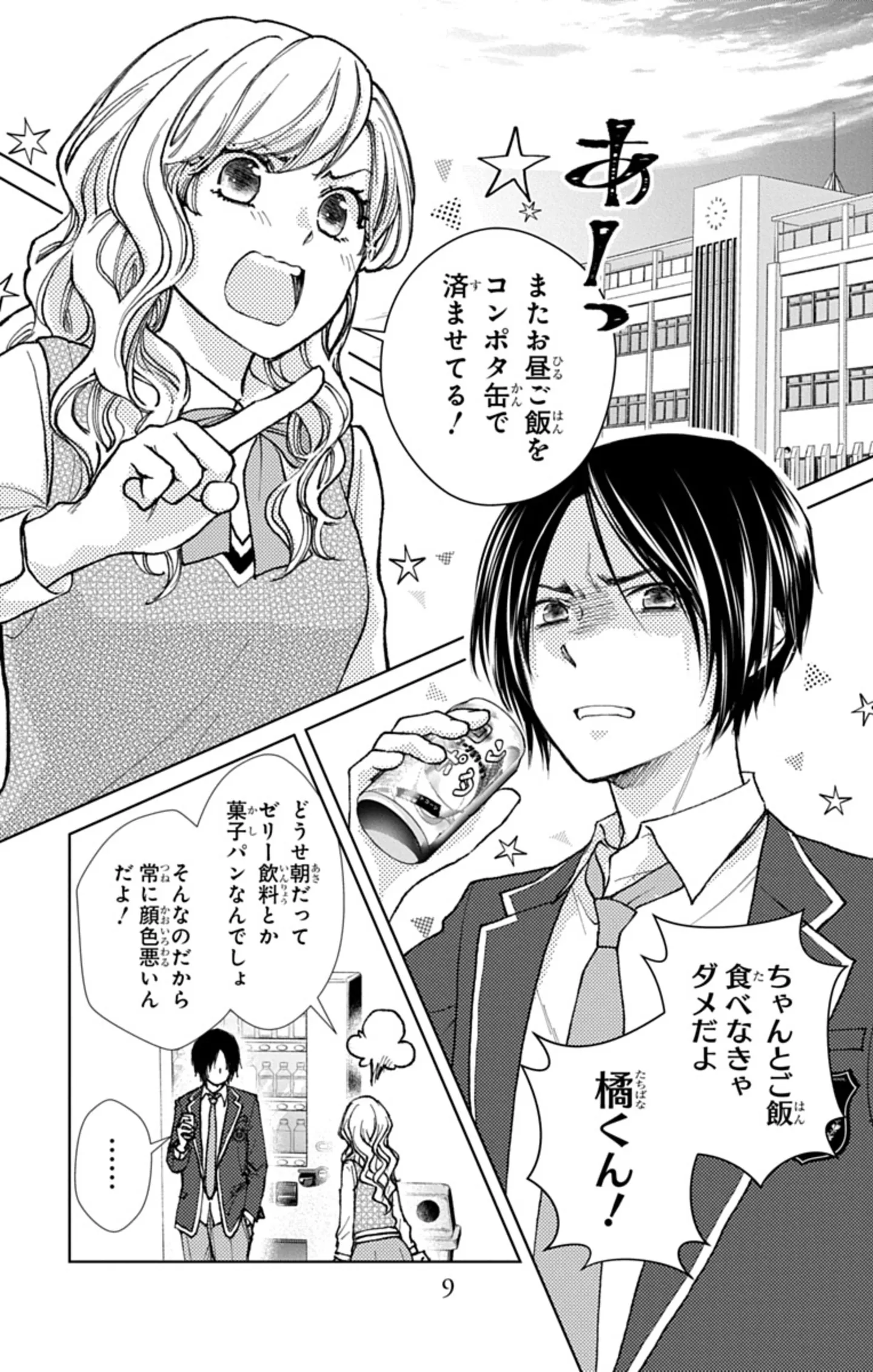 主人公・小松崎凛はちょっとお節介。老舗製菓会社の御曹司であるクラスメイト・橘くんのお昼がいつもコーンポタージュ一缶のみであることが気になり、「ちゃんとご飯たべなきゃ」と声をかける。そんな凛を橘くんは「今日も超ウザい」と完全拒否。それでも凛は「食べることは生きること」と橘くんへの接触を諦めない。