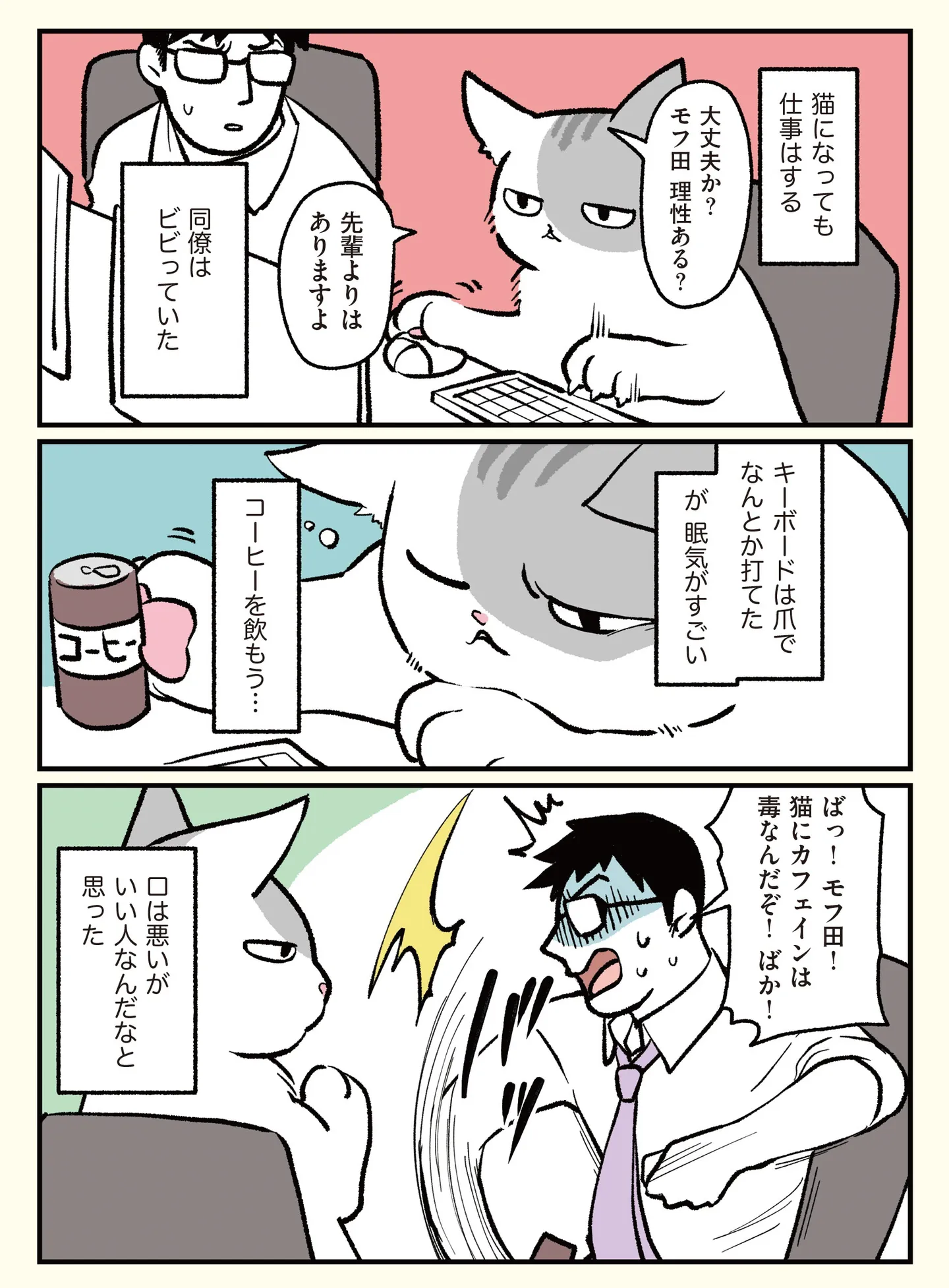 連日働き詰めの毎日。ある朝起きると、猫になっていた!?/ブラック企業の社員が猫になって人生が変わった話1① マンガ 公開日:2025/10/28 <第2回に続く> 本作品をAmazon(電子)で読む > 本作品をRenta!で読む > 本作品をebookjapanで読む > 本作品をBOOK☆WALKERで読む > « 1 2 あわせて読みたい 【漫画】『ブラック企業の社員が猫になって人生が変わった話』を読む 【漫画】『放置子の面倒を見るのは誰ですか?』を読む 【漫画】『鴻池剛と猫のぽんた ニャアアアン!』を読む 最新マンガと話題の書籍を無料で試し読み! 前の回 一覧 人気の連載 次の回 ブラック企業の社員が猫になって人生が変わった話 モフ田くんの場合 (コミックエッセイ) Amazon(電子) Amazon 楽天(電子) Renta! ebookjapan ブックライブ コミックシーモア DMMブックス U-NEXT ブラック企業の社員が猫になって人生が変わった話2 モフ田くんの場合 (コミックエッセイ) Amazon(電子) Amazon 楽天(電子) Renta! ebookjapan ブックライブ コミックシーモア DMMブックス U-NEXT ブラック企業の社員が猫になって人生が変わった話3 ハチ谷くんと時々モフ田くんの場合 (コミックエッセイ) Amazon(電子) Amazon 楽天(電子) Renta! ebookjapan ブックライブ コミックシーモア DMMブックス U-NEXT ブラック企業の社員が猫になって人生が変わった話4 トラ雄パパとその家族の場合 (コミックエッセイ) Amazon(電子) Amazon 楽天(電子) Renta! ebookjapan ブックライブ コミックシーモア DMMブックス U-NEXT ブラック企業の社員が猫になって人生が変わった話5 ビッグキャッツプロジェクトの場合 (コミックエッセイ) Amazon(電子) Amazon 楽天(電子) Renta! ebookjapan ブックライブ コミックシーモア DMMブックス U-NEXT