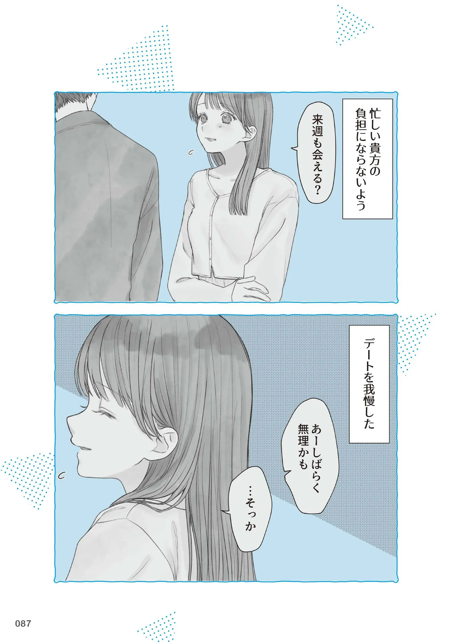 あっけなく訪れた恋の終わり。何が悪かったのか、彼との関係を振り返ると…/すべての恋が終わるとしても④ マンガ 公開日:2025/10/20 この連載を最初から読む→ 本作品をAmazon(電子)で読む > 本作品をRenta!で読む > >> 次のページに続く « 1 2 3 > あわせて読みたい 【葵わかな&神尾楓珠W主演でドラマ化】「30秒で泣ける」超短編小説、待望のコミカライズ 【漫画】『すべての恋が終わるとしても』を第1回から読む 【漫画】『愛したいのは、お前だけ~天才外科医の甘い策略~』を第1回から読む 【漫画】『娘を妊娠させたのは誰ですか?』を読む 【漫画】『大蛇に嫁いだ娘』を読む 最新マンガと話題の書籍を無料で試し読み! 前の回 一覧 人気の連載 次の回 すべての恋が終わるとしても (スターツ出版) Amazon(電子) Amazon 楽天(電子) Renta! ebookjapan ブックライブ コミックシーモア DMMブックス U-NEXT