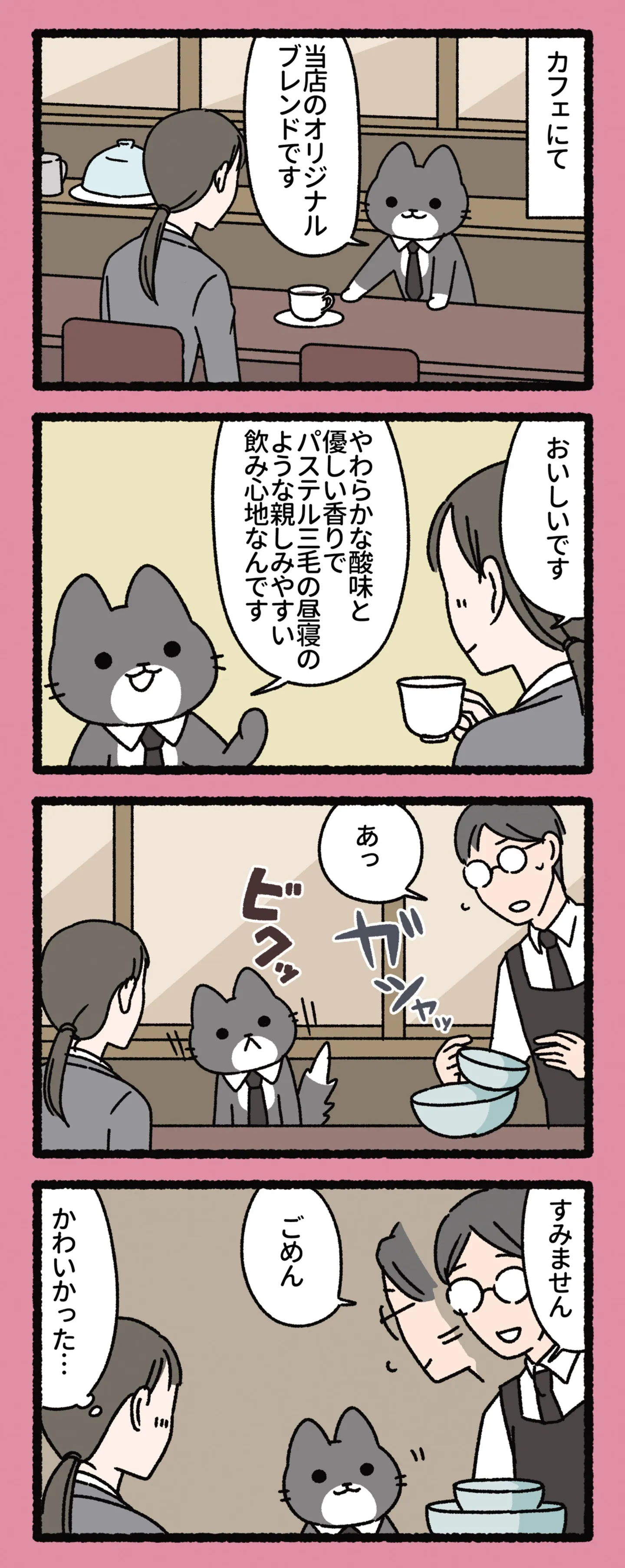 猫語と人間の言葉を使いこなす猫が働くカフェ。そこに来るお客様は…/ねこもんすたー 1④ マンガ 公開日:2025/10/21 この連載を最初から読む→ <続きは本書でお楽しみください> 本作品をAmazon(電子)で読む > 本作品をRenta!で読む > 本作品をebookjapanで読む > 本作品をBOOK☆WALKERで読む > « 1 2 あわせて読みたい 【漫画】『ねこもんすたー』を第1回から読む 【漫画】『娘を妊娠させたのは誰ですか?』を読む 【漫画】『飼い猫がなつきません 』を読む 最新マンガと話題の書籍を無料で試し読み! 前の回 一覧 人気の連載 次の回 ねこもんすたー (バンブーコミックス 4コマセレクション) Amazon(電子) Amazon 楽天(電子) Renta! ebookjapan ブックライブ コミックシーモア DMMブックス U-NEXT ねこもんすたー ニャーオ! (バンブーコミックス 4コマセレクション) Amazon(電子) Amazon 楽天(電子) ねこもんすたー スリスリ (バンブーコミックス 4コマセレクション) Amazon(電子) Amazon 楽天(電子) ねこもんすたー フミフミ (バンブーコミックス 4コマセレクション) Amazon(電子) Amazon 楽天(電子)