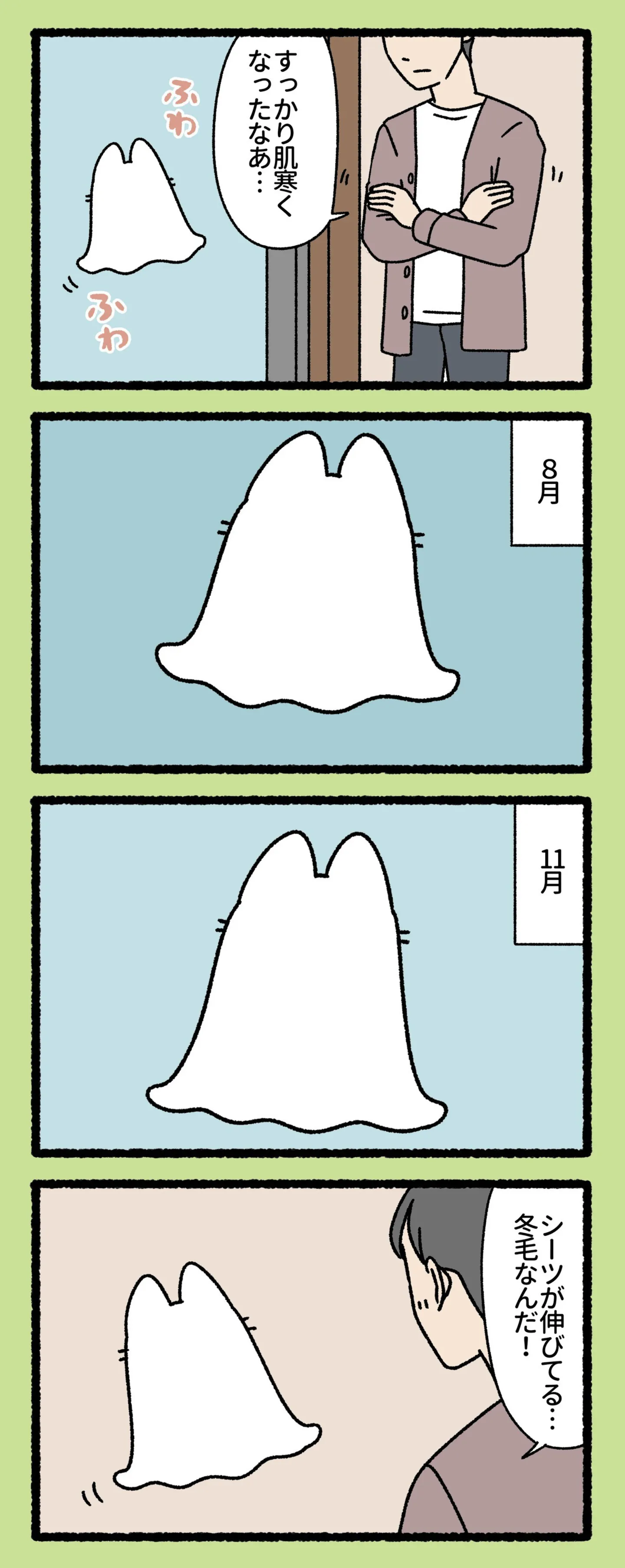 シーツをまとう猫。肌寒い季節になり、冬毛になったその姿は…/ねこもんすたー 2⑦ マンガ 公開日:2025/10/24 この連載を最初から読む→ <第8回に続く> 本作品をAmazon(電子)で読む > 本作品をRenta!で読む > 本作品をebookjapanで読む > 本作品をBOOK☆WALKERで読む > « 1 2 あわせて読みたい 【漫画】『ねこもんすたー』を第1回から読む 【漫画】『娘をグルーミングする先生』を読む 【漫画】『永久機関シマエナガ』を読む 最新マンガと話題の書籍を無料で試し読み! 前の回 一覧 人気の連載 次の回 ねこもんすたー (バンブーコミックス 4コマセレクション) Amazon(電子) Amazon 楽天(電子) Renta! ebookjapan ブックライブ コミックシーモア DMMブックス U-NEXT ねこもんすたー ニャーオ! (バンブーコミックス 4コマセレクション) Amazon(電子) Amazon 楽天(電子) ねこもんすたー スリスリ (バンブーコミックス 4コマセレクション) Amazon(電子) Amazon 楽天(電子) ねこもんすたー フミフミ (バンブーコミックス 4コマセレクション) Amazon(電子) Amazon 楽天(電子)