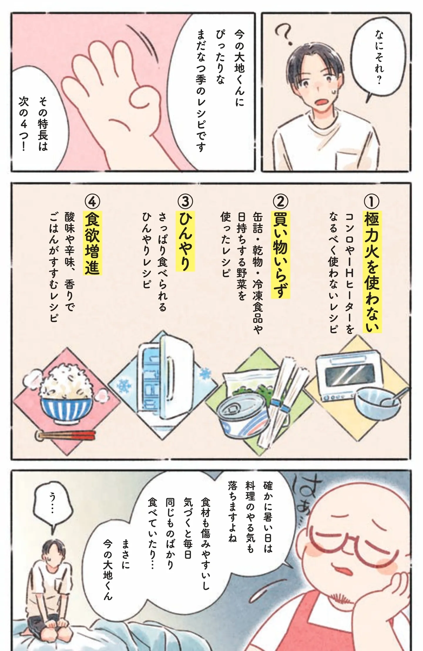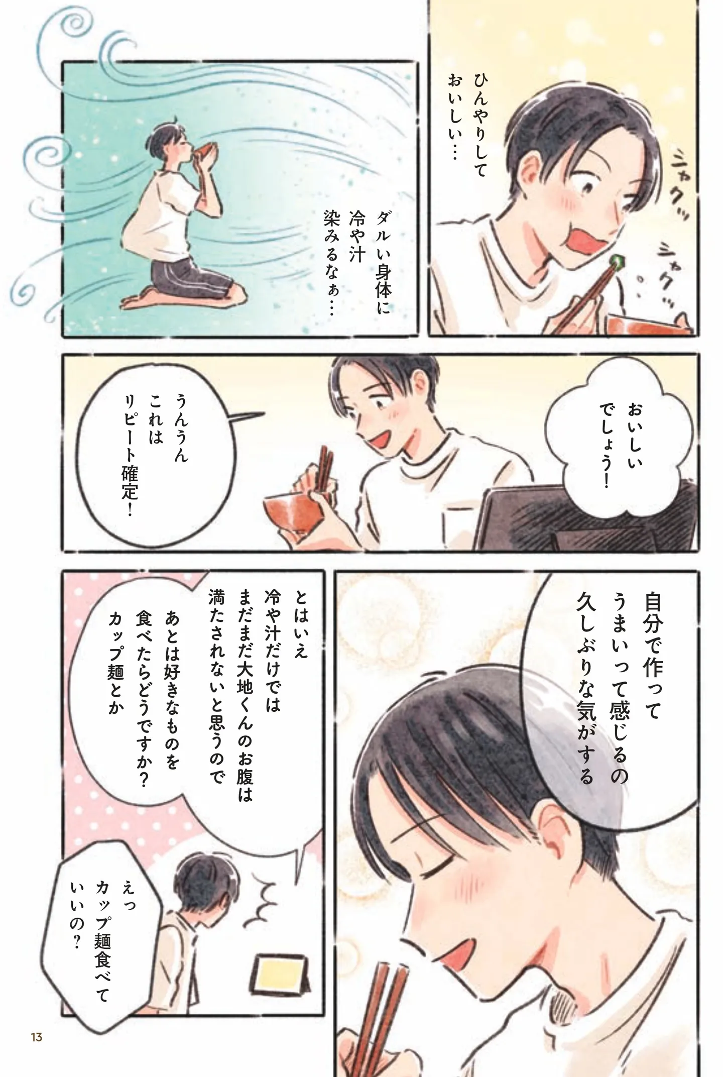 夏バテ気味で食欲もやる気もゼロ…暑さが続く「まだなつ季」に手軽に作れるひんやりレシピ/まだなつレシピ マンガ 公開日:2025/10/17 本作品をAmazon(電子)で読む > 本作品をebookjapanで読む > >> 次のページに続く « 1 2 3 4 > あわせて読みたい 【漫画】『何もしたくない日のまだなつレシピ』を読む 「とにかく癒される」と話題沸騰中! 思い切り泣けなくなった大人のあなたへ――猫とペンギンの温かな友情から学ぶ“私の労わり方” 【漫画】『放置子の面倒を見るのは誰ですか?』を読む 【漫画】『異世界居酒屋「のぶ」』を読む 【漫画】『舞ちゃんのお姉さん飼育ごはん。』を読む 最新マンガと話題の書籍を無料で試し読み! 前の回 一覧 人気の連載 次の回 何もしたくない日のまだなつレシピ 試し読み *電子書籍ストアBOOK☆WALKERへ移動します