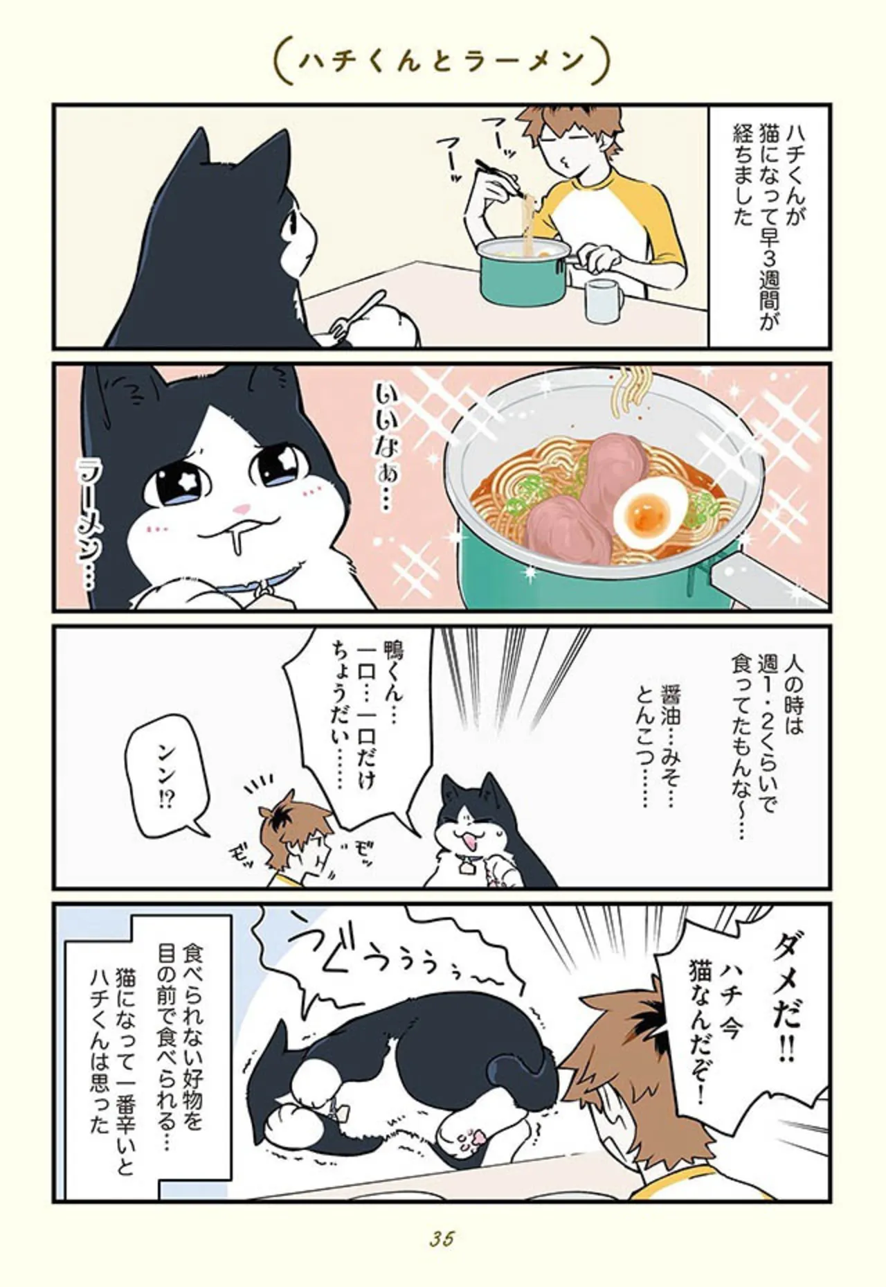 大好きなラーメン…ひと口だけでも食べたいと懇願するが?/ブラック企業の社員が猫になって人生が変わった話3㉘ マンガ 公開日:2025/11/24 この連載を最初から読む→ <第29回に続く> 本作品をAmazon(電子)で読む > 本作品をRenta!で読む > 本作品をebookjapanで読む > 本作品をBOOK☆WALKERで読む > « 1 2 あわせて読みたい 【漫画】『ブラック企業の社員が猫になって人生が変わった話』を第1回から読む 【漫画】『妻が別れを告げる時』を読む 【漫画】『ポッケの旅支度』を読む 最新マンガと話題の書籍を無料で試し読み! 前の回 一覧 人気の連載 次の回 ブラック企業の社員が猫になって人生が変わった話 モフ田くんの場合 (コミックエッセイ) Amazon(電子) Amazon 楽天(電子) Renta! ebookjapan ブックライブ コミックシーモア DMMブックス U-NEXT ブラック企業の社員が猫になって人生が変わった話2 モフ田くんの場合 (コミックエッセイ) Amazon(電子) Amazon 楽天(電子) Renta! ebookjapan ブックライブ コミックシーモア DMMブックス U-NEXT ブラック企業の社員が猫になって人生が変わった話3 ハチ谷くんと時々モフ田くんの場合 (コミックエッセイ) Amazon(電子) Amazon 楽天(電子) Renta! ebookjapan ブックライブ コミックシーモア DMMブックス U-NEXT ブラック企業の社員が猫になって人生が変わった話4 トラ雄パパとその家族の場合 (コミックエッセイ) Amazon(電子) Amazon 楽天(電子) Renta! ebookjapan ブックライブ コミックシーモア DMMブックス U-NEXT ブラック企業の社員が猫になって人生が変わった話5 ビッグキャッツプロジェクトの場合 (コミックエッセイ) Amazon(電子) Amazon 楽天(電子) Renta! ebookjapan ブックライブ コミックシーモア DMMブックス U-NEXT
