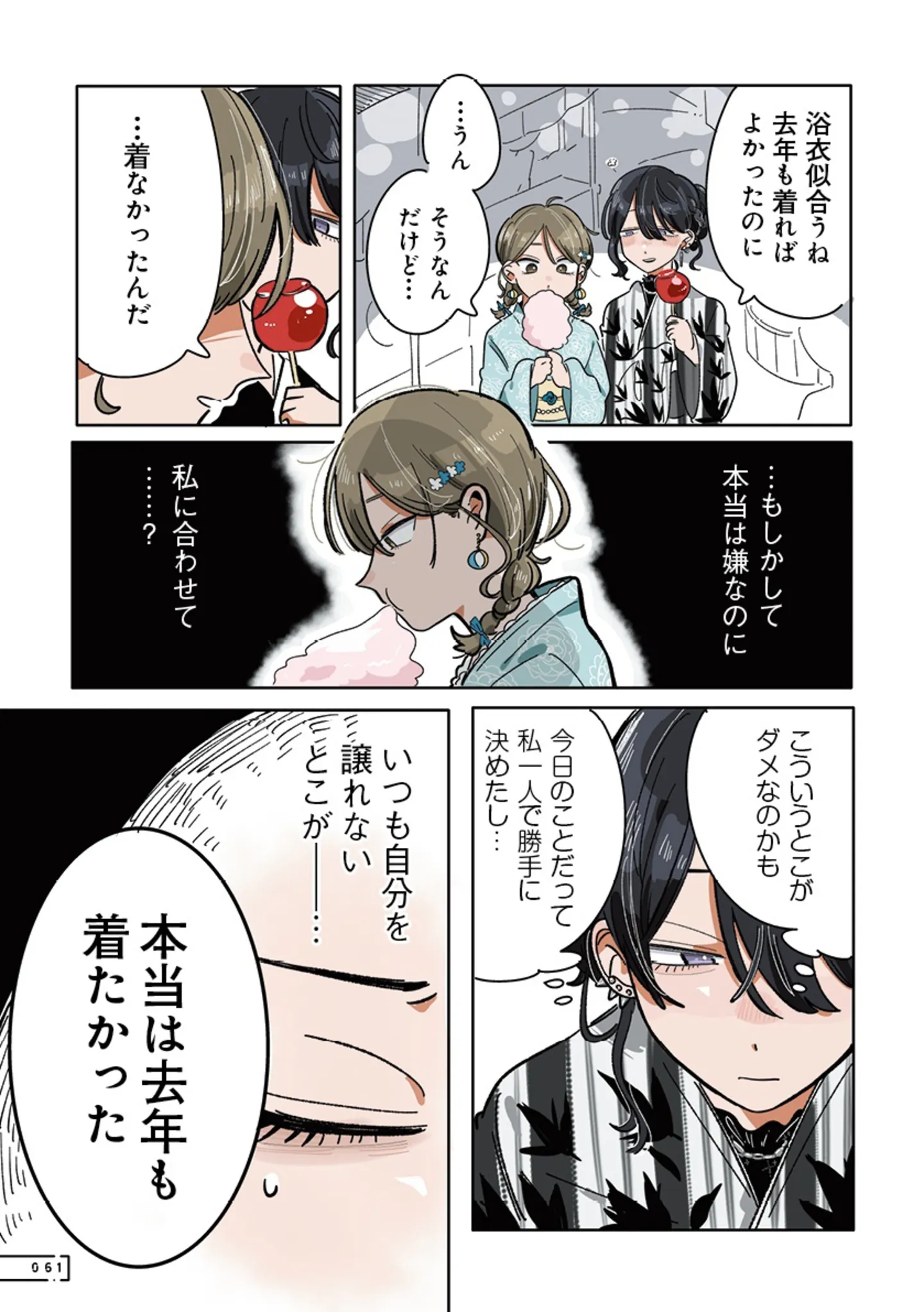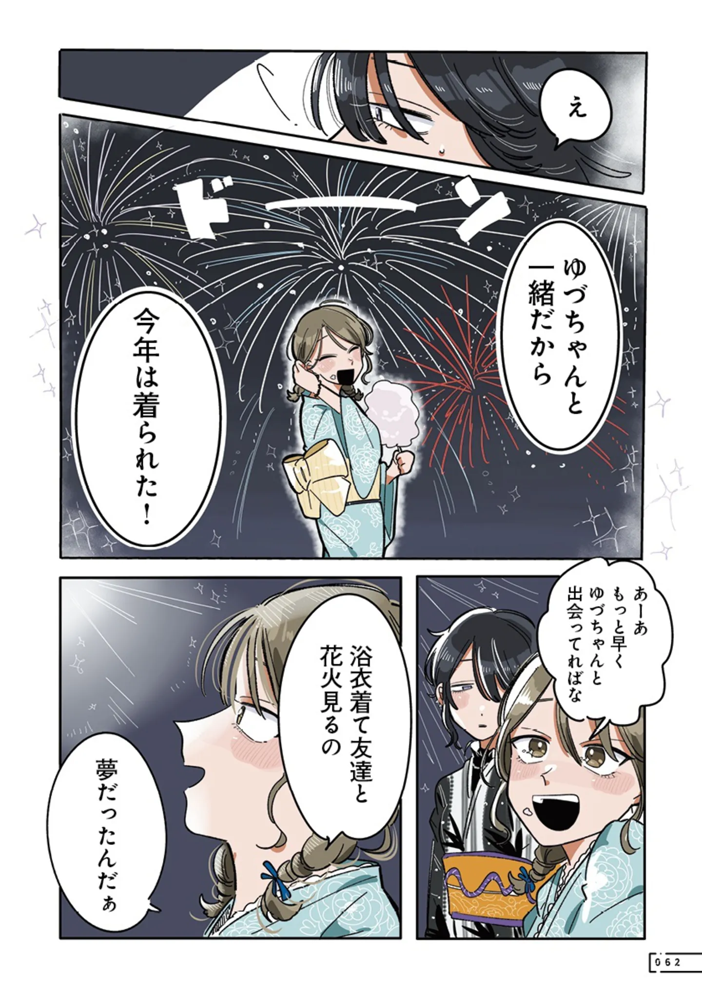 浴衣を着て花火を見たかった! すてきな友達と出会い、今年は夢が叶った/思ってたのと違うあの子の話⑮ マンガ 公開日:2025/11/8 この連載を最初から読む→ <第16回に続く> 本作品をAmazon(電子)で読む > 本作品をRenta!で読む > 本作品をebookjapanで読む > 本作品をBOOK☆WALKERで読む > « 1 2 あわせて読みたい 【漫画】『思ってたのと違うあの子の話』を第1回から読む 【漫画】『うちは「問題」のある家族でした』を読む 【漫画】『白目むきながら心理カウンセラーやってます』を読む 最新マンガと話題の書籍を無料で試し読み! 前の回 一覧 人気の連載 次の回 思ってたのと違うあの子の話【電子特典付き】 (中経☆コミックス) Amazon(電子) Amazon 楽天(電子) Renta! ebookjapan ブックライブ コミックシーモア DMMブックス U-NEXT