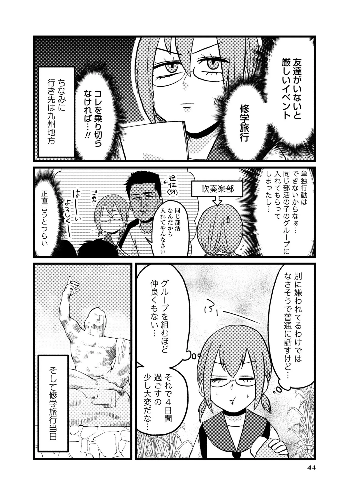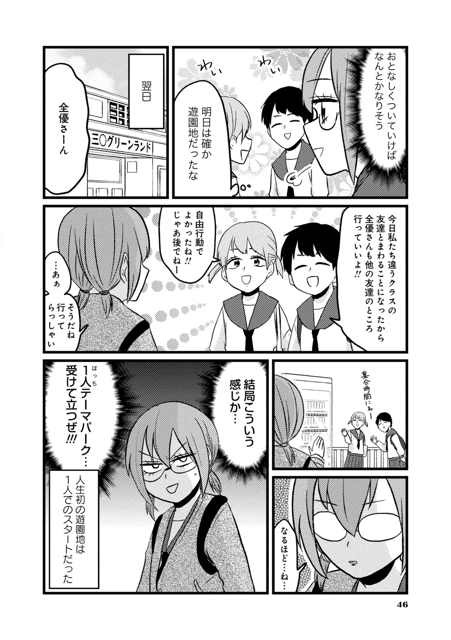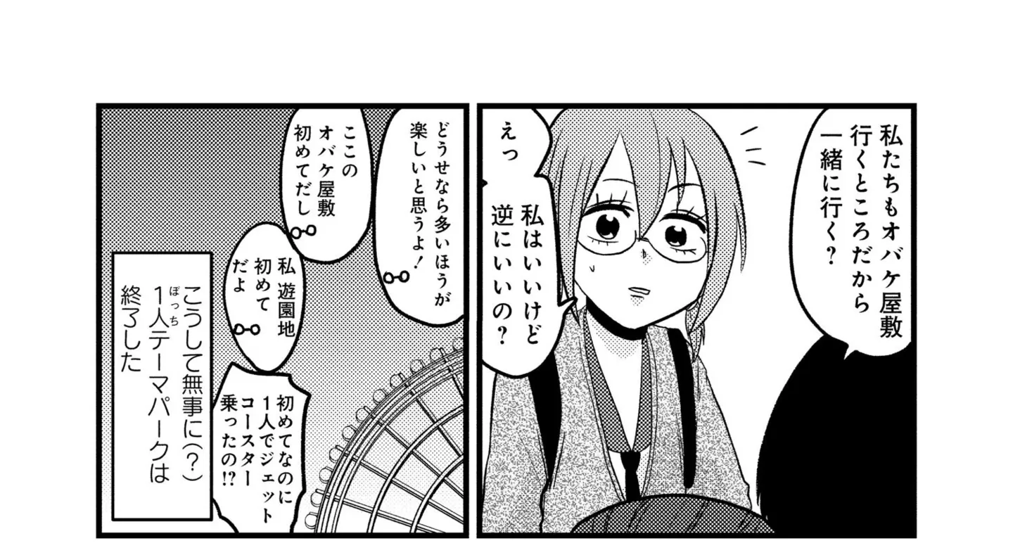 友達のいない中学生が修学旅行へ。1人でジェットコースターに乗って気づいたこと/脱・陰キャで事故プロデュース⑧ マンガ 公開日:2025/11/12 この連載を最初から読む→ <第9回に続く> 本作品をAmazon(電子)で読む > 本作品をRenta!で読む > 本作品をebookjapanで読む > 本作品をBOOK☆WALKERで読む > « 1 2 あわせて読みたい 【漫画】『脱・陰キャで事故プロデュース』を第1回から読む 【漫画】『腸はなくとも食欲はある!』を読む 【漫画】『心曇る日は ご自愛ごはんを』を読む 【漫画】『腸よ鼻よ』を読む 【漫画】『勤労ロードショー 今日も財布がさみしくて』を読む 最新マンガと話題の書籍を無料で試し読み! 前の回 一覧 人気の連載 次の回 脱・陰キャで事故プロデュース (バンブーコミックス エッセイセレクション) Amazon(電子) Amazon 楽天(電子) Renta! ebookjapan ブックライブ コミックシーモア DMMブックス U-NEXT