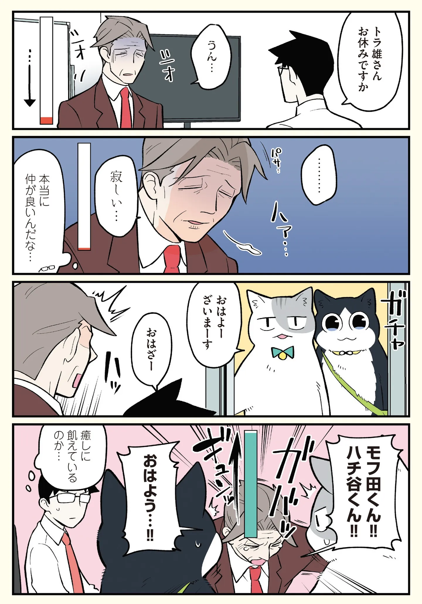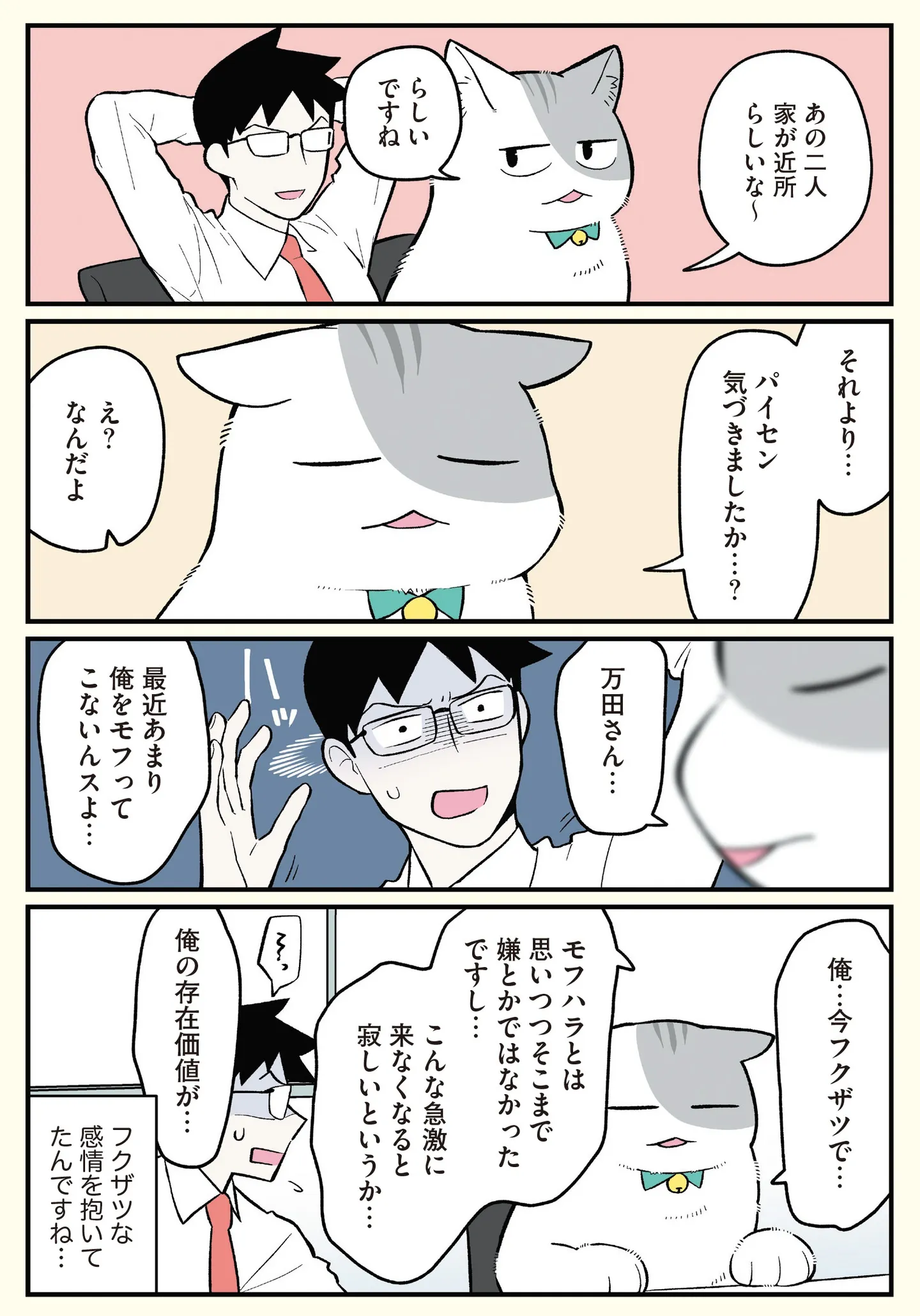 最近モフってこない常務。「モフハラ」だと思っていたけど…/ブラック企業の社員が猫になって人生が変わった話5㊺ マンガ 公開日:2025/12/11 この連載を最初から読む→ <第46回に続く> 本作品をAmazon(電子)で読む > 本作品をRenta!で読む > 本作品をebookjapanで読む > 本作品をBOOK☆WALKERで読む > « 1 2 あわせて読みたい 【漫画】『ブラック企業の社員が猫になって人生が変わった話』を第1回から読む 【漫画】『わたしが選んだ死産の話』を読む 【漫画】『夜は猫といっしょ』を読む 最新マンガと話題の書籍を無料で試し読み! 前の回 一覧 人気の連載 次の回 ブラック企業の社員が猫になって人生が変わった話 モフ田くんの場合 (コミックエッセイ) 試し読み *電子書籍ストアBOOK☆WALKERへ移動します ブラック企業の社員が猫になって人生が変わった話2 モフ田くんの場合 (コミックエッセイ) 試し読み *電子書籍ストアBOOK☆WALKERへ移動します ブラック企業の社員が猫になって人生が変わった話3 ハチ谷くんと時々モフ田くんの場合 (コミックエッセイ) 試し読み *電子書籍ストアBOOK☆WALKERへ移動します ブラック企業の社員が猫になって人生が変わった話4 トラ雄パパとその家族の場合 (コミックエッセイ) 試し読み *電子書籍ストアBOOK☆WALKERへ移動します ブラック企業の社員が猫になって人生が変わった話5 ビッグキャッツプロジェクトの場合 (コミックエッセイ) 試し読み *電子書籍ストアBOOK☆WALKERへ移動します