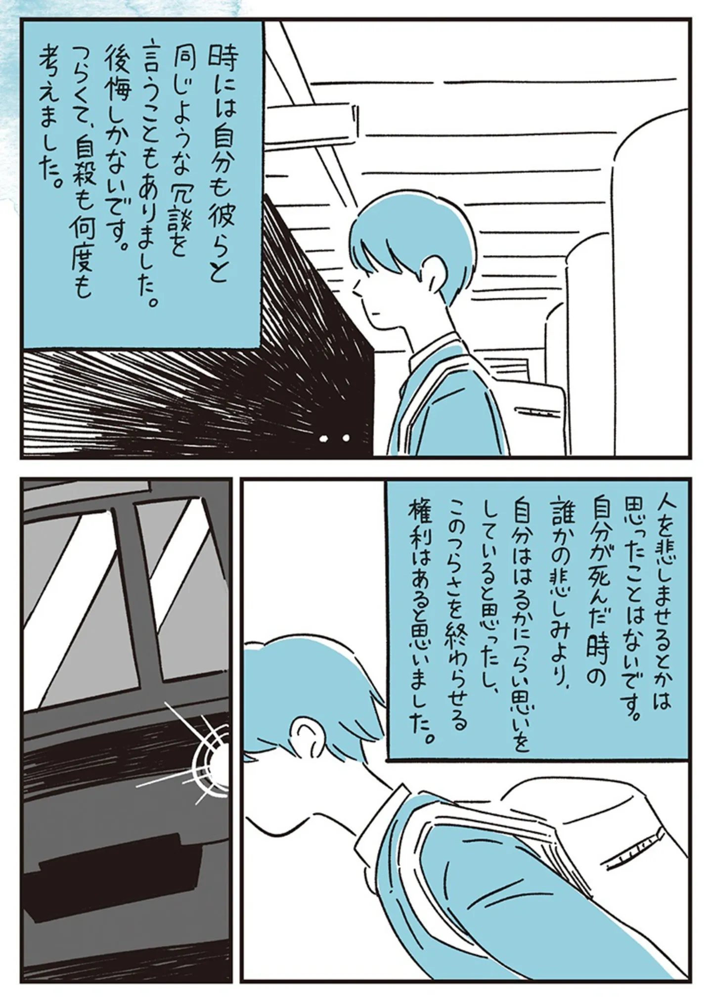 ゲイとバレないよう、偽る日々が苦痛だった。勇気を出して友人に明かしたら――/10代の時のつらい経験、私たちはこう乗り越えました マンガ 公開日:2025/11/15 この連載を最初から読む→ <第3回に続く> 本作品をAmazon(電子)で読む > 本作品をRenta!で読む > 本作品をebookjapanで読む > 本作品をBOOK☆WALKERで読む > « 1 2 3 あわせて読みたい 【漫画】『10代の時のつらい経験、私たちはこう乗り越えました』を第1回から読む 【漫画】『マウンティングママ友が、全てを失った話』を読む 【漫画】『痔だと思ったら大腸がんステージ4でした 標準治療を旅と漫画で乗り越えてなんとか経過観察になるまで』を読む 【漫画】『策略女を許さない 職場のヤバイ女が自滅するまで』を読む 【漫画】『心曇る日は ご自愛ごはんを』を読む 最新マンガと話題の書籍を無料で試し読み! 前の回 一覧 人気の連載 次の回 10代の時のつらい経験、私たちはこう乗り越えました (コミックエッセイ) Amazon(電子) Amazon 楽天(電子) Renta! ebookjapan ブックライブ コミックシーモア DMMブックス U-NEXT