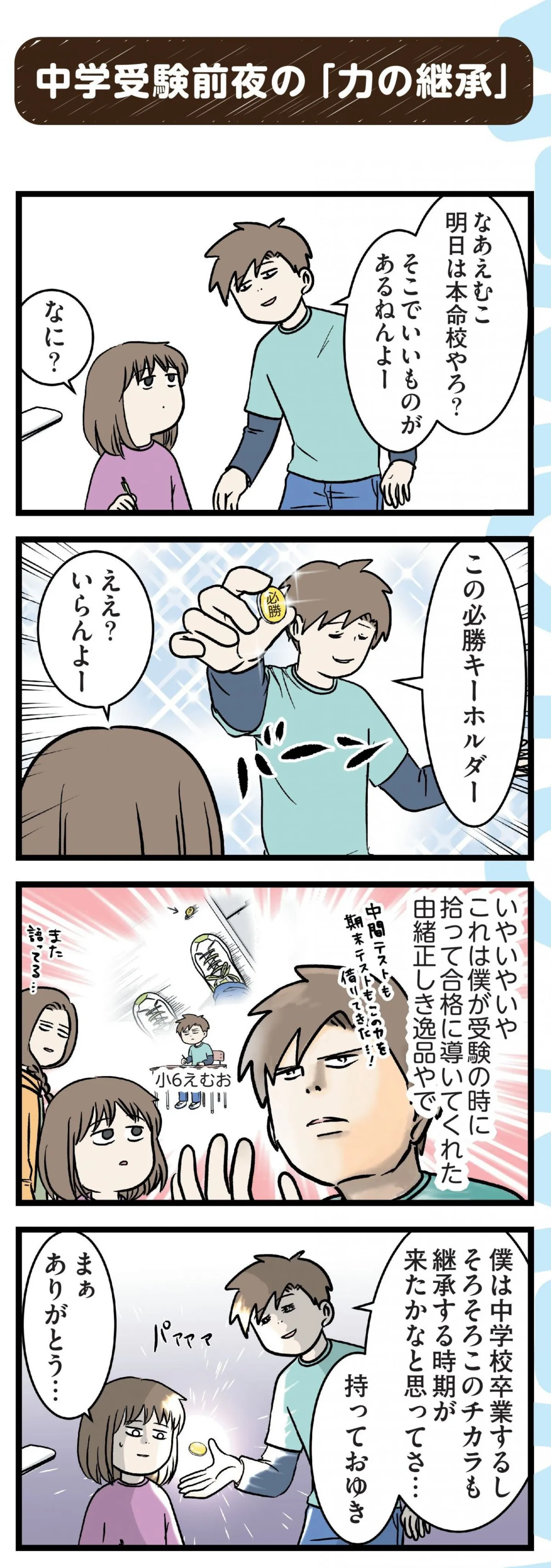 来年から中学生の長女。成長をしみじみ感じる兄がまるでお父さん/みてや!小学生エムモトえむみの勝手きままライフ マンガ 公開日:2025/12/16 この連載を最初から読む→ <第34回に続く> 本作品をAmazon(電子)で読む > 本作品をRenta!で読む > 本作品をebookjapanで読む > 本作品をBOOK☆WALKERで読む > « 1 2 3 あわせて読みたい 【漫画】『小学生エムモトえむみの勝手きままライフ(1~3巻)』を第1回から読む 【漫画】『放置子の面倒を見るのは誰ですか?』を読む 【漫画】『赤ちゃんに転生した話』を読む 【漫画】『パパが育休をとってみたら妻子への愛が深まった話』を読む 【漫画】『ただいま! 保育士でこ先生』を読む 最新マンガと話題の書籍を無料で試し読み! 前の回 一覧 人気の連載 次の回 小学生エムモトえむみの勝手きままライフ (コミックエッセイ) 試し読み *電子書籍ストアBOOK☆WALKERへ移動します いくで!小学生エムモトえむみの勝手きままライフ (コミックエッセイ) 試し読み *電子書籍ストアBOOK☆WALKERへ移動します みてや!小学生エムモトえむみの勝手きままライフ (コミックエッセイ) 試し読み *電子書籍ストアBOOK☆WALKERへ移動します