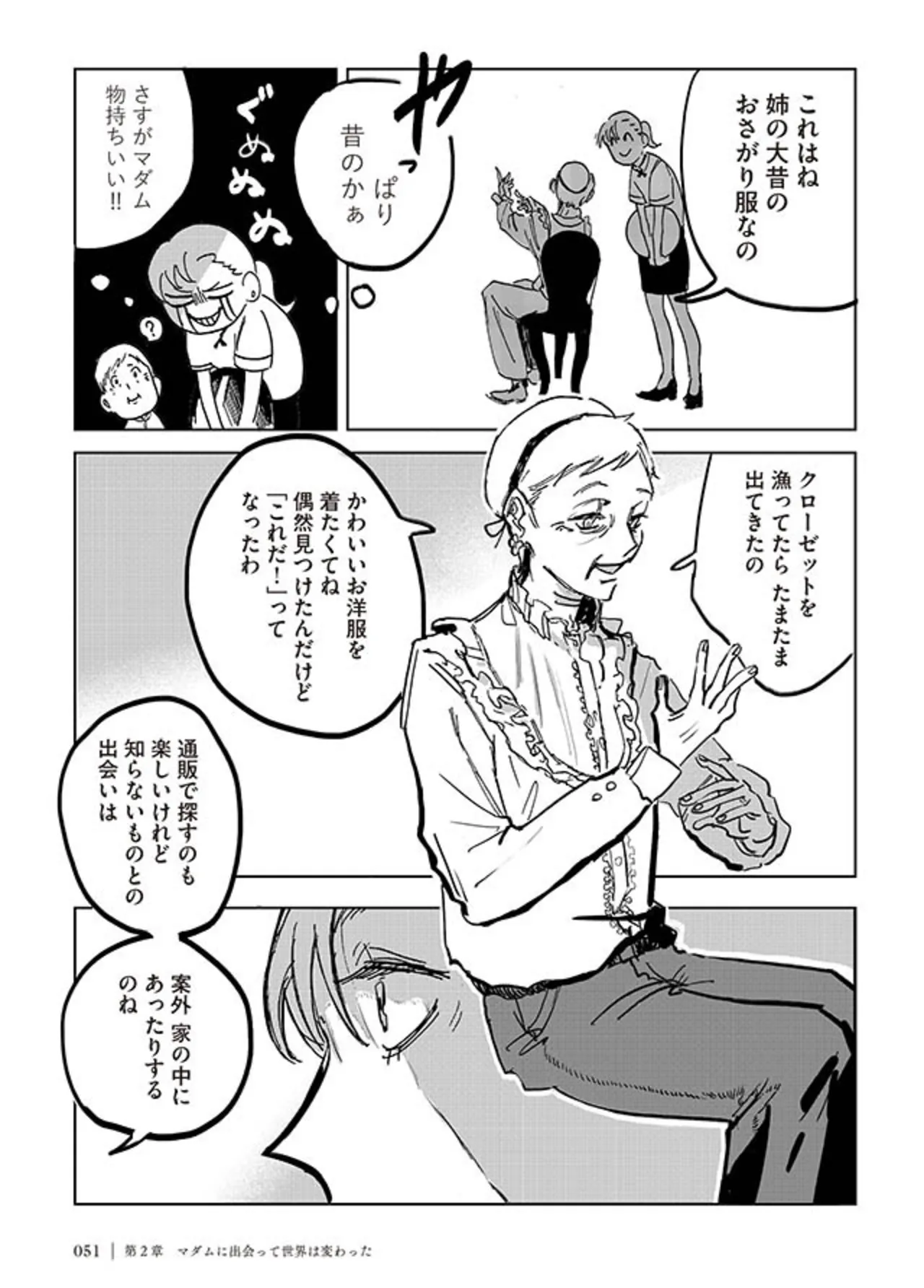 通販では買えないオシャレな洋服。手の届かないものは案外家の中にある?/マダムが教えてくれたこと(第1弾)⑦ マンガ 公開日:2025/11/20 この連載を最初から読む→ <第8回に続く> 本作品をAmazon(電子)で読む > 本作品をRenta!で読む > 本作品をebookjapanで読む > 本作品をBOOK☆WALKERで読む > « 1 2 あわせて読みたい 【漫画】『マダムが教えてくれたこと(第1弾・第2弾)』を第1回から読む 【漫画】『今日もワタシが一番カワイイ 残念マウント女子MAYU』を読む 【漫画】『娘をグルーミングする先生』を読む 最新マンガと話題の書籍を無料で試し読み! 前の回 一覧 人気の連載 次の回 マダムが教えてくれたこと (コミックエッセイ) Amazon(電子) Amazon 楽天(電子) Renta! ebookjapan ブックライブ コミックシーモア DMMブックス U-NEXT マダムが教えてくれたこと 背中を押してくれる魔法の言葉 (コミックエッセイ) Amazon(電子) Amazon 楽天(電子)