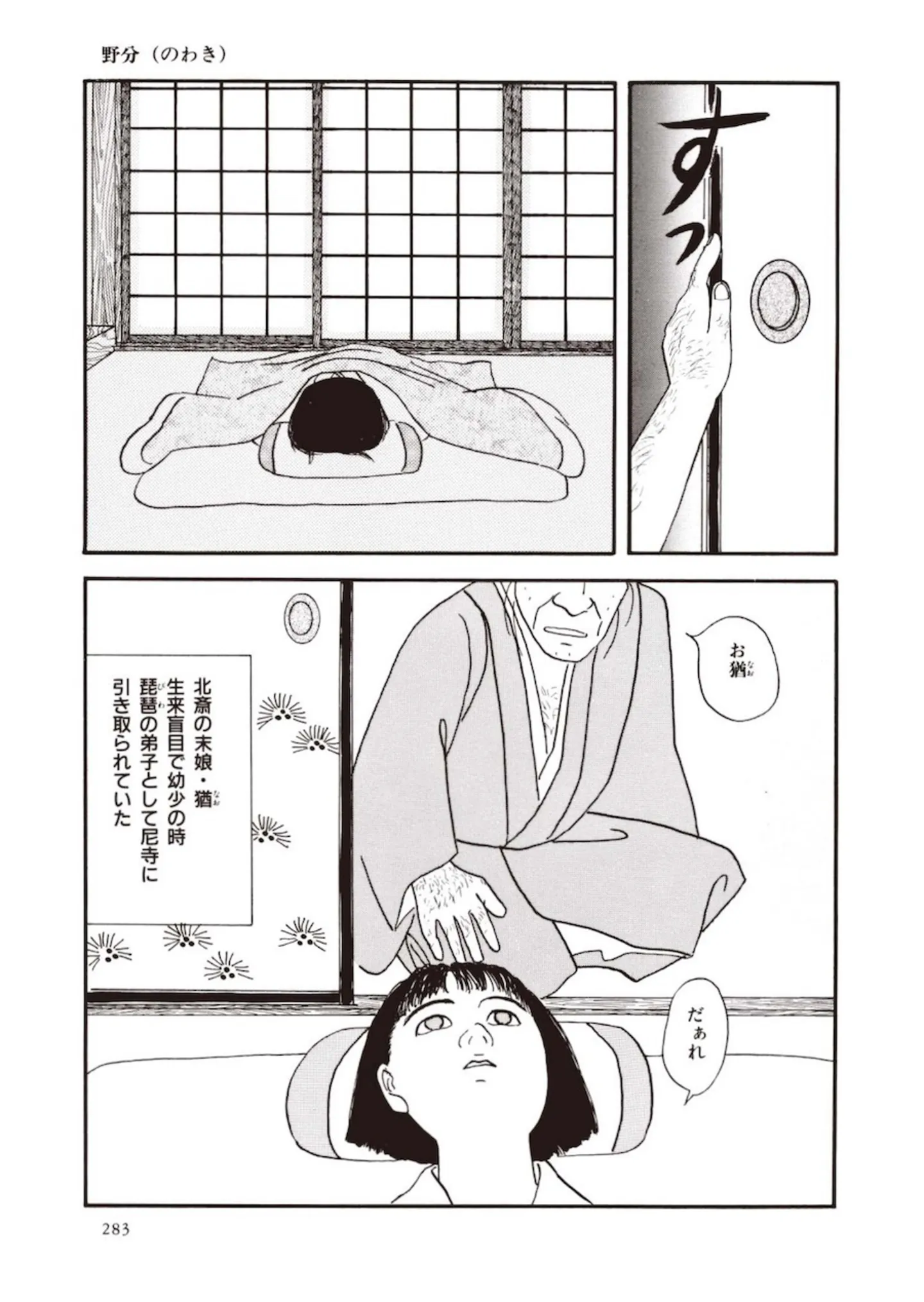 死は最も恐ろしい――目が見えない娘に魔除けの絵を描く北斎/百日紅(下)② マンガ 公開日:2025/10/25 この連載を最初から読む→ 『百日紅(下)』(杉浦日向子/筑摩書房)第2回【全3回】 映画『おーい、応為』が2025年10月17日(金)から全国ロードショー中! その原作漫画となる『百日紅(上)』『百日紅(下)』は、累計23万部を突破した杉浦日向子の代表作です。葛飾北斎と娘のお栄――天才浮世絵師である二人を通して、江戸の人々の暮らしや交流を描いています。今回は下巻から、映画化されたストーリー「野分(のわき)」を全3回で公開。多彩な手法で表現された江戸の世界観をお楽しみください! 【30日間無料】Amazonの読み放題をチェック > 本作品をAmazon(電子)で読む > 本作品をebookjapanで読む > >> 次のページに続く 1 2 3 > あわせて読みたい 【本作のレビューを読む】長澤まさみ主演・映画『おーい、応為』公開!原作の一つ、杉浦日向子の『百日紅』ってどんな漫画? 【漫画】『百日紅(下)』を第1回から読む 【漫画】『痔だと思ったら大腸がんステージ4でした 標準治療を旅と漫画で乗り越えてなんとか経過観察になるまで』を読む 【漫画】『ラ・マキユーズ~ヴェルサイユの化粧師~ La maquilleuse』を読む 最新マンガと話題の書籍を無料で試し読み! 前の回 一覧 人気の連載 次の回 百日紅(下) (ちくま文庫) Amazon(電子) Amazon 楽天(電子) ebookjapan ブックライブ コミックシーモア DMMブックス U-NEXT 百日紅(上) (ちくま文庫) Amazon(電子) Amazon 楽天(電子) ebookjapan ブックライブ コミックシーモア DMMブックス U-NEXT