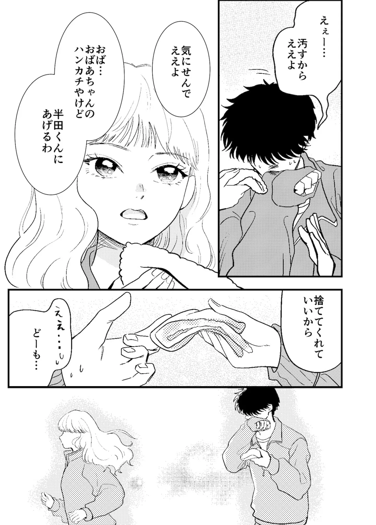努力嫌いのダウナー男子。女子から借りたハンカチの、お礼の仕方が分からない/ 半田のパンダ① マンガ 公開日:2025/10/25 >> 次のページに続く « 2 3 4 5 6 > あわせて読みたい 友だちがいない真面目な女子高生。屋上でお弁当を食べようとすると、ヤンキーに絡まれて大ピンチ!?/ひとりとひとりで恋になる① 仲良くなったはずの強面男子からの拒絶。友だちだと思っていたのは私だけ…?/ひとりとひとりで恋になる⑤ 屋上で出会った男子との連絡先交換。何気ない反応をもっと見たいと思うのは恋のはじまり…?/ひとりとひとりで恋になる④ 教師から喫煙を疑われるヤンキー。勇気を出して庇ったら、後ろから抱き着かれ…!?/ひとりとひとりで恋になる③ 不良っぽい見た目だけど実は良い人?並んでお昼を食べて分かった、不器用な優しさとぬくもり/ひとりとひとりで恋になる② 最新マンガと話題の書籍を無料で試し読み! 前の回 一覧 人気の連載 次の回