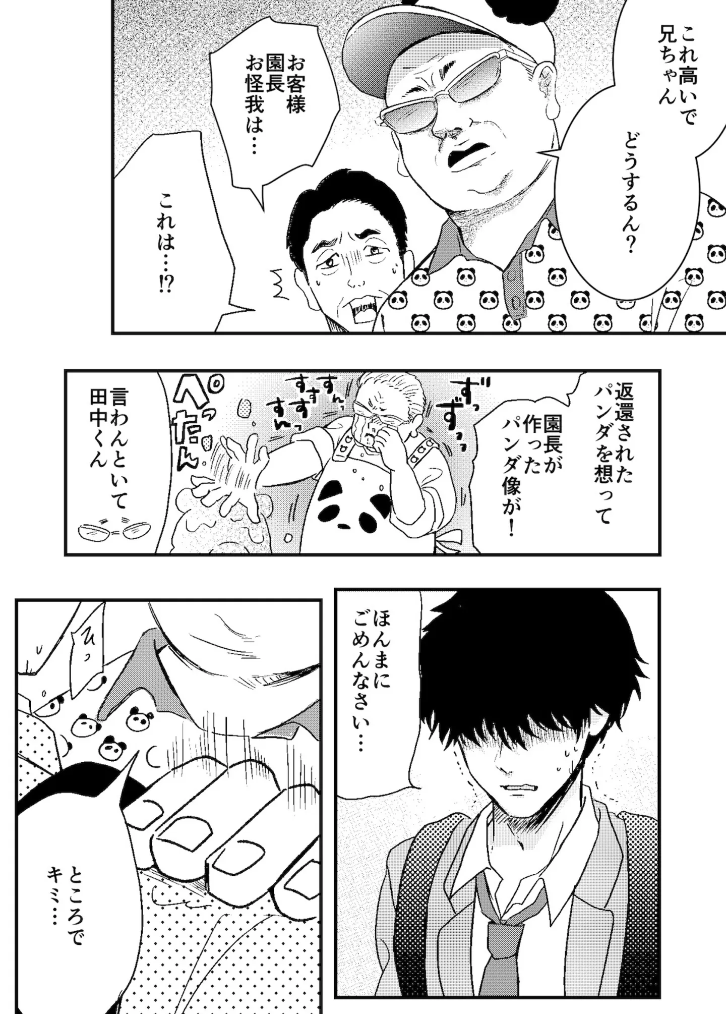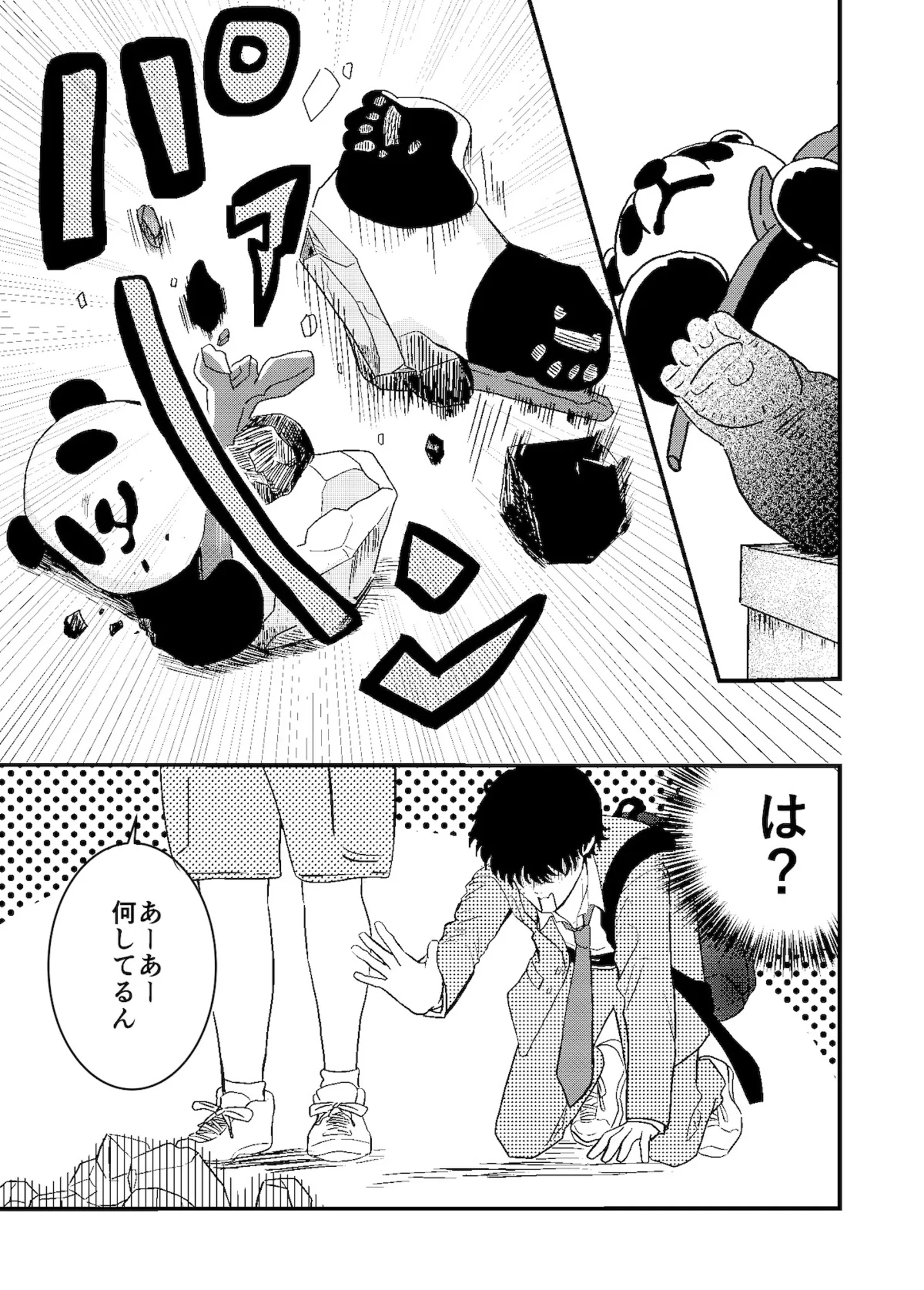 借りたハンカチを買い直しに動物園へ。ぶつかられた拍子に、パンダ像を倒してしまい…。/ 半田のパンダ② マンガ 公開日:2025/10/26 この連載を最初から読む→ <第3回に続く> « 1 2 3 4 5 あわせて読みたい 友だちがいない真面目な女子高生。屋上でお弁当を食べようとすると、ヤンキーに絡まれて大ピンチ!?/ひとりとひとりで恋になる① 屋上で出会った男子との連絡先交換。何気ない反応をもっと見たいと思うのは恋のはじまり…?/ひとりとひとりで恋になる④ 教師から喫煙を疑われるヤンキー。勇気を出して庇ったら、後ろから抱き着かれ…!?/ひとりとひとりで恋になる③ 不良っぽい見た目だけど実は良い人?並んでお昼を食べて分かった、不器用な優しさとぬくもり/ひとりとひとりで恋になる② 最新マンガと話題の書籍を無料で試し読み! 前の回 一覧 人気の連載 次の回