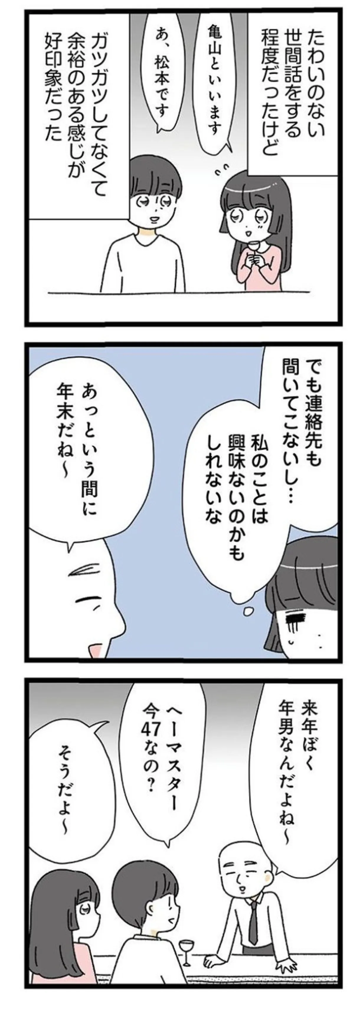 20歳上の男性と付き合うことに。歳の差は不安だけど、いつも優しく気遣ってくれる彼/家事は女の仕事だろ?③ マンガ 公開日:2025/11/10 この連載を最初から読む→ 本作品をAmazon(電子)で読む > 本作品をRenta!で読む > >> 次のページに続く « 1 2 3 > あわせて読みたい 【漫画】『家事は女の仕事だろ? 共働きなのに何もしない20歳上の夫』を第1回から読む 【漫画】『妻が別れを告げる時』を読む 【漫画】『夫と心が通わない カサンドラ症候群で笑えなくなった私が離婚するまでの話』を読む 最新マンガと話題の書籍を無料で試し読み! 前の回 一覧 人気の連載 次の回 家事は女の仕事だろ? 共働きなのに何もしない20歳上の夫 (LScomic) Amazon 楽天(電子) Renta! ebookjapan ブックライブ コミックシーモア DMMブックス U-NEXT