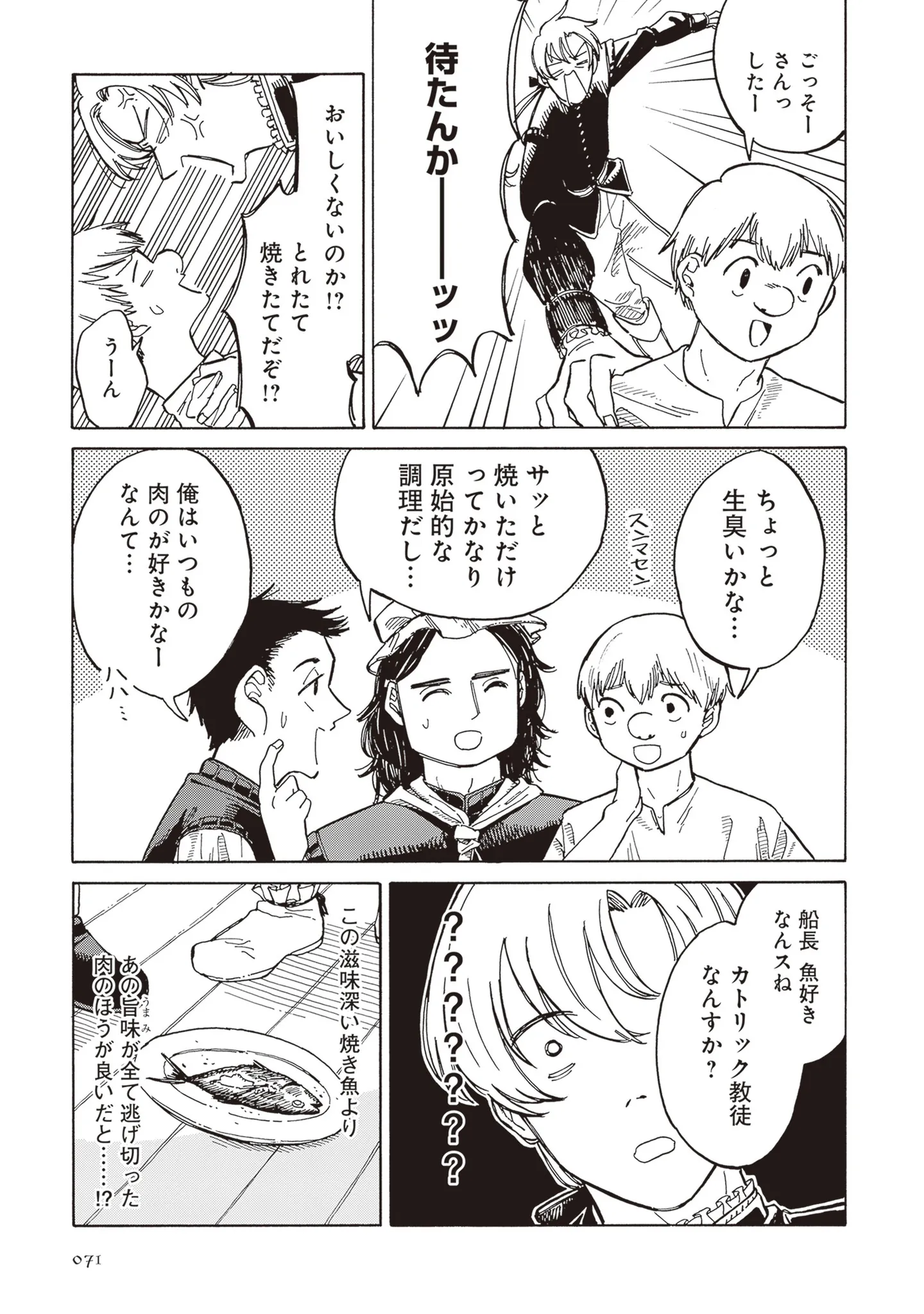 船の食事がまずい。17世紀の船長と入れ替わったパワハラ社長は魚の塩焼きを振る舞うが…/船長、問題ありません!⑦ マンガ 公開日:2025/11/21 この連載を最初から読む→ <第8回に続く> 本作品をAmazon(電子)で読む > 本作品をRenta!で読む > 本作品をebookjapanで読む > 本作品をBOOK☆WALKERで読む > « 1 2 3 あわせて読みたい 【漫画】『船長、問題ありません!』を第1回から読む 【漫画】『娘をグルーミングする先生』を読む 【漫画】『あたふた研修医やってます。』を読む 最新マンガと話題の書籍を無料で試し読み! 前の回 一覧 人気の連載 次の回 船長、問題ありません! I (HARTA COMIX) Amazon(電子) Amazon 楽天(電子) Renta! ebookjapan ブックライブ コミックシーモア DMMブックス U-NEXT