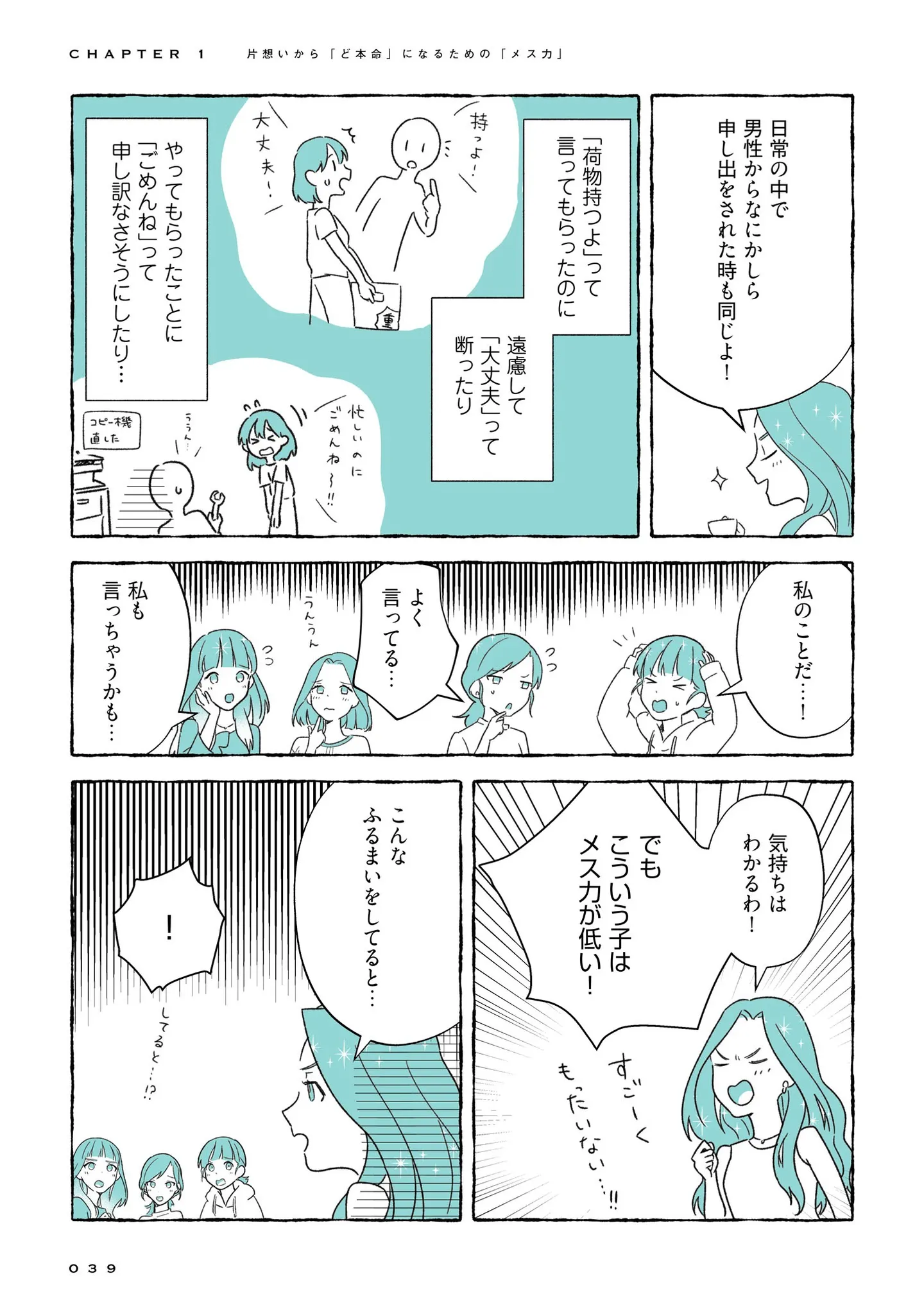 食事デートで男性が「払うよ」と言ってくれたら…「メス力」的正解は?/魔法の「メス力」⑤ マンガ 公開日:2025/11/26 この連載を最初から読む→ <第6回に続く> 本作品をAmazon(電子)で読む > 本作品をRenta!で読む > 本作品をebookjapanで読む > 本作品をBOOK☆WALKERで読む > « 1 2 3 あわせて読みたい 【漫画】『「恋愛地獄」、「婚活疲れ」とはもうサヨナラ! ”最後の恋”を”最高の結婚”にする 魔法の「メス力」』を第1回から読む 【漫画】『ちっちゃくてかわいいワタシ 痛すぎる勘違い女の正体』を読む 【漫画】『あの花が咲く丘で、君とまた出会えたら。』を読む 最新マンガと話題の書籍を無料で試し読み! 前の回 一覧 人気の連載 次の回 「恋愛地獄」、「婚活疲れ」とはもうサヨナラ! “最後の恋”を“最高の結婚”にする 魔法の「メス力」 (中経出版) Amazon(電子) Amazon 楽天(電子) Renta! ebookjapan ブックライブ コミックシーモア DMMブックス U-NEXT