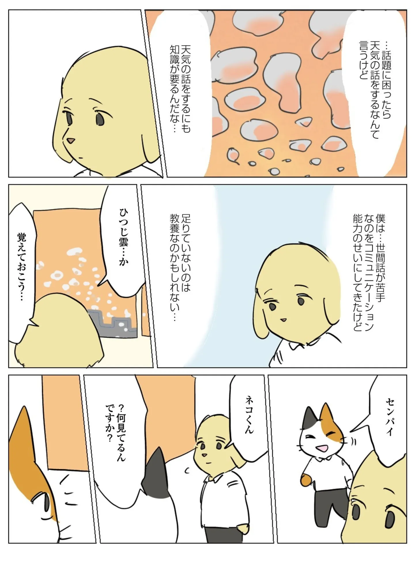 自分にはコミュ力だけじゃなく教養も足りないのかも…。悩む犬が後輩の能天気さに救われる/働く!くよくよ犬⑤