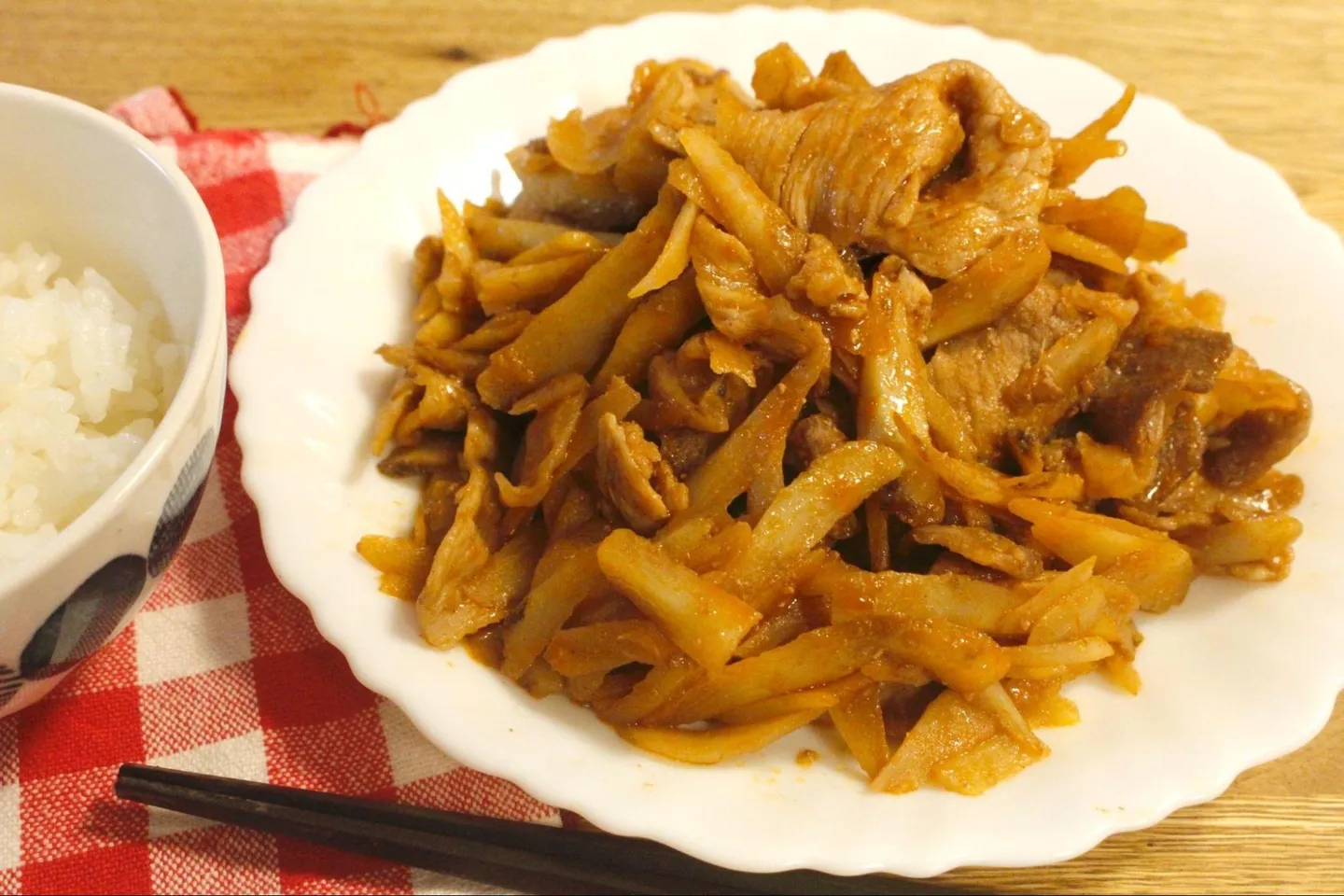 わずか10分の爆速メシが完成! 肉の脂身とごぼうの歯応えが合わさって濃厚な味わいだから、ご飯がどんどん進みます。大人もこどもも好きな味付けで、家族もバクバク食べてくれました。