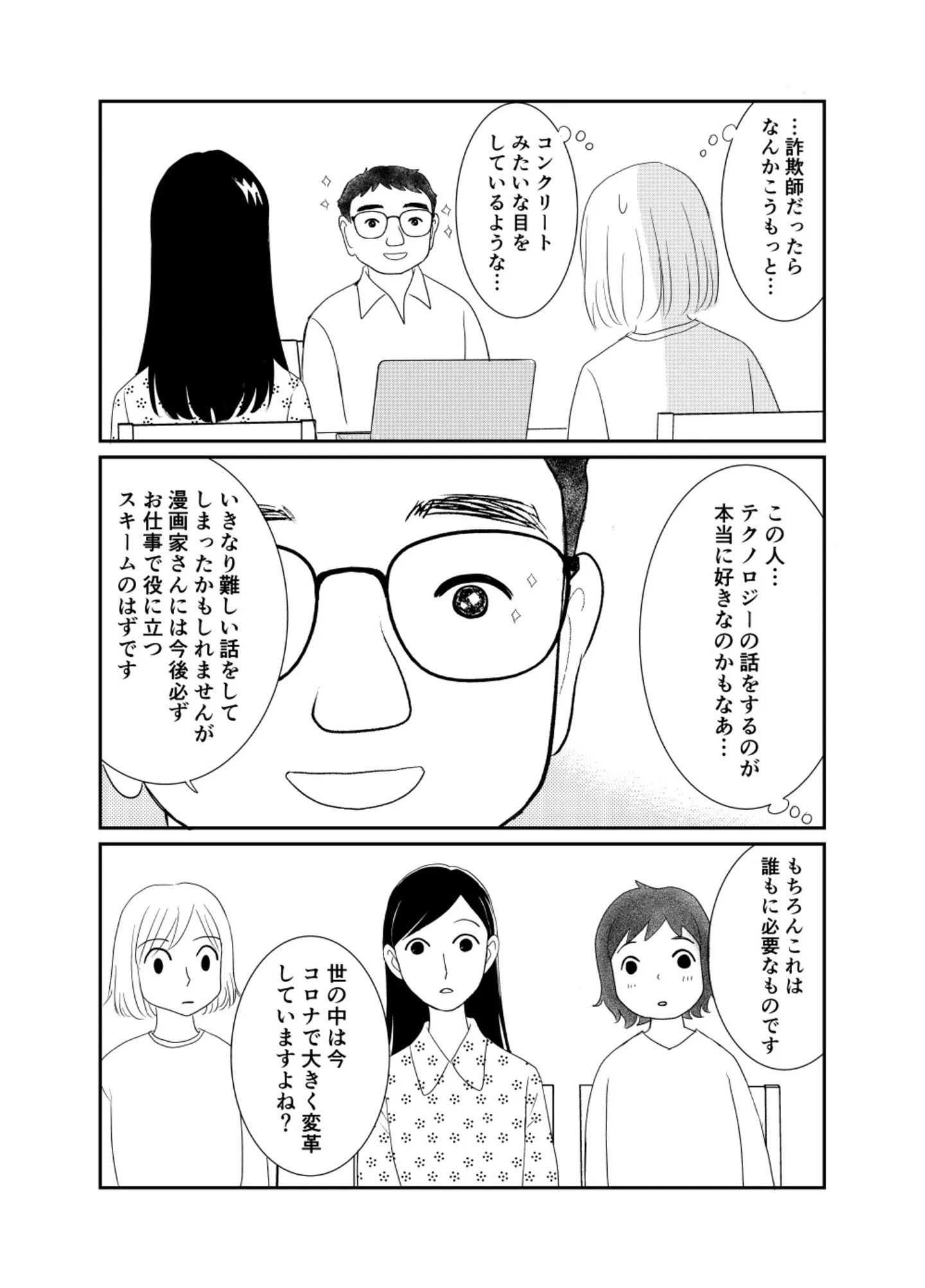 誠実そうな男性が語る“うさんくさい”投資話。この投資、本当に信じていいの?/100万円、預けた先は“詐欺”でした。② マンガ 公開日:2025/11/20 この連載を最初から読む→ >> 次のページに続く « 1 2 3 4 > あわせて読みたい 「仕事で必要になるはず」突然の投資話に動揺。運がいいねと言われたけれど…/100万円、預けた先は“詐欺”でした。① 【漫画】『100万円、預けた先は“詐欺”でした。』を読む 【漫画】『ブラパト! ブランドパトロール 本日も異常なし!』を読む 【漫画】『すみれ先生は料理したくない』を読む 最新マンガと話題の書籍を無料で試し読み! 前の回 一覧 人気の連載 次の回