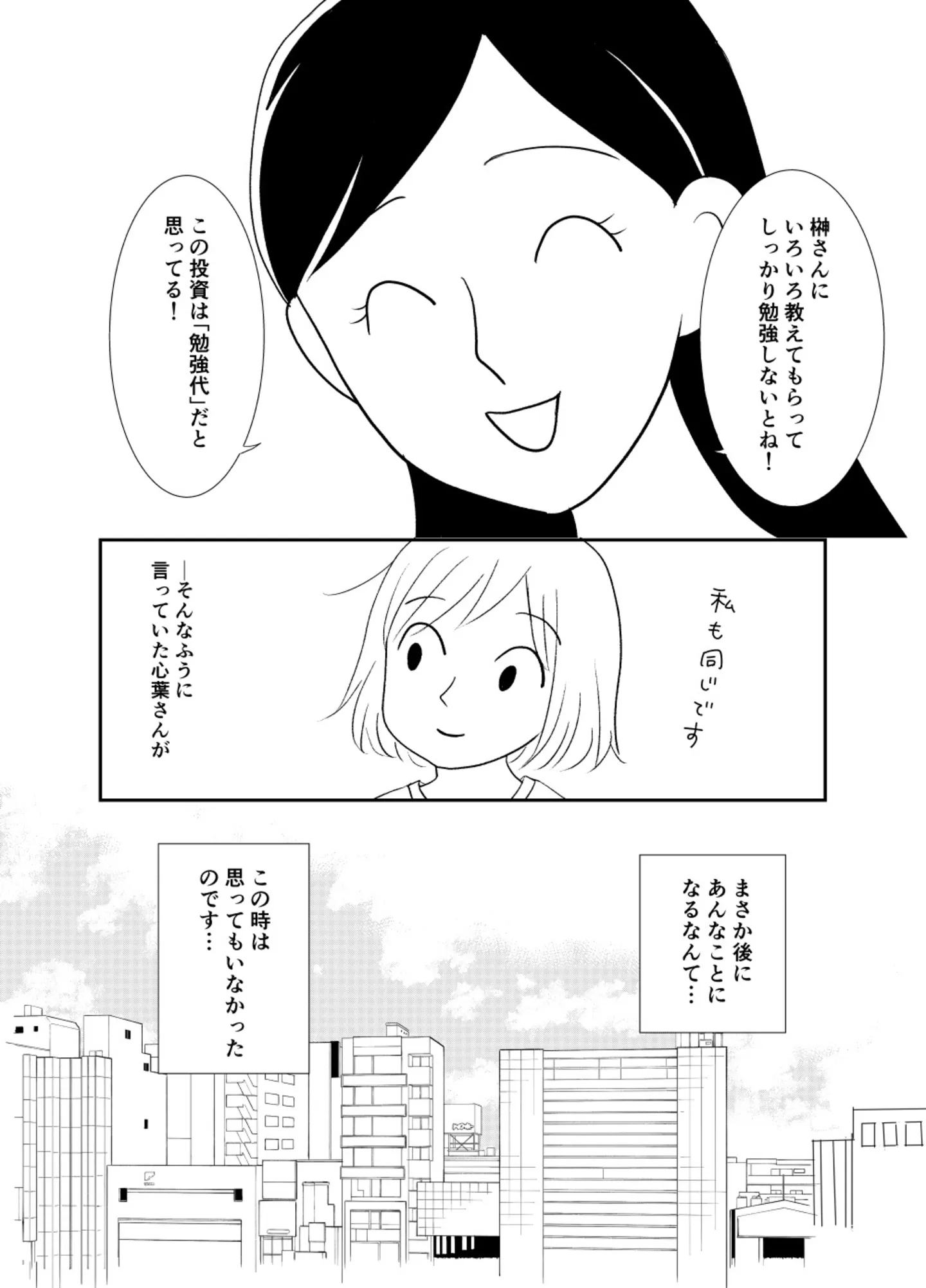 30万円投資した人気漫画家がカルチャーショック、投資界隈の“あるある”とは?/100万円、預けた先は“詐欺”でした。③ マンガ 公開日:2025/11/27 この連載を最初から読む→ <第4回に続く> « 1 2 3 4 あわせて読みたい 誠実そうな男性が語る“うさんくさい”投資話。この投資、本当に信じていいの?/100万円、預けた先は“詐欺”でした。② 「仕事で必要になるはず」突然の投資話に動揺。運がいいねと言われたけれど…/100万円、預けた先は“詐欺”でした。① 【漫画】『100万円、預けた先は“詐欺”でした。』を読む 【漫画】『ブラパト! ブランドパトロール 本日も異常なし!』を読む 【漫画】『すみれ先生は料理したくない』を読む 最新マンガと話題の書籍を無料で試し読み! 前の回 一覧 人気の連載 次の回