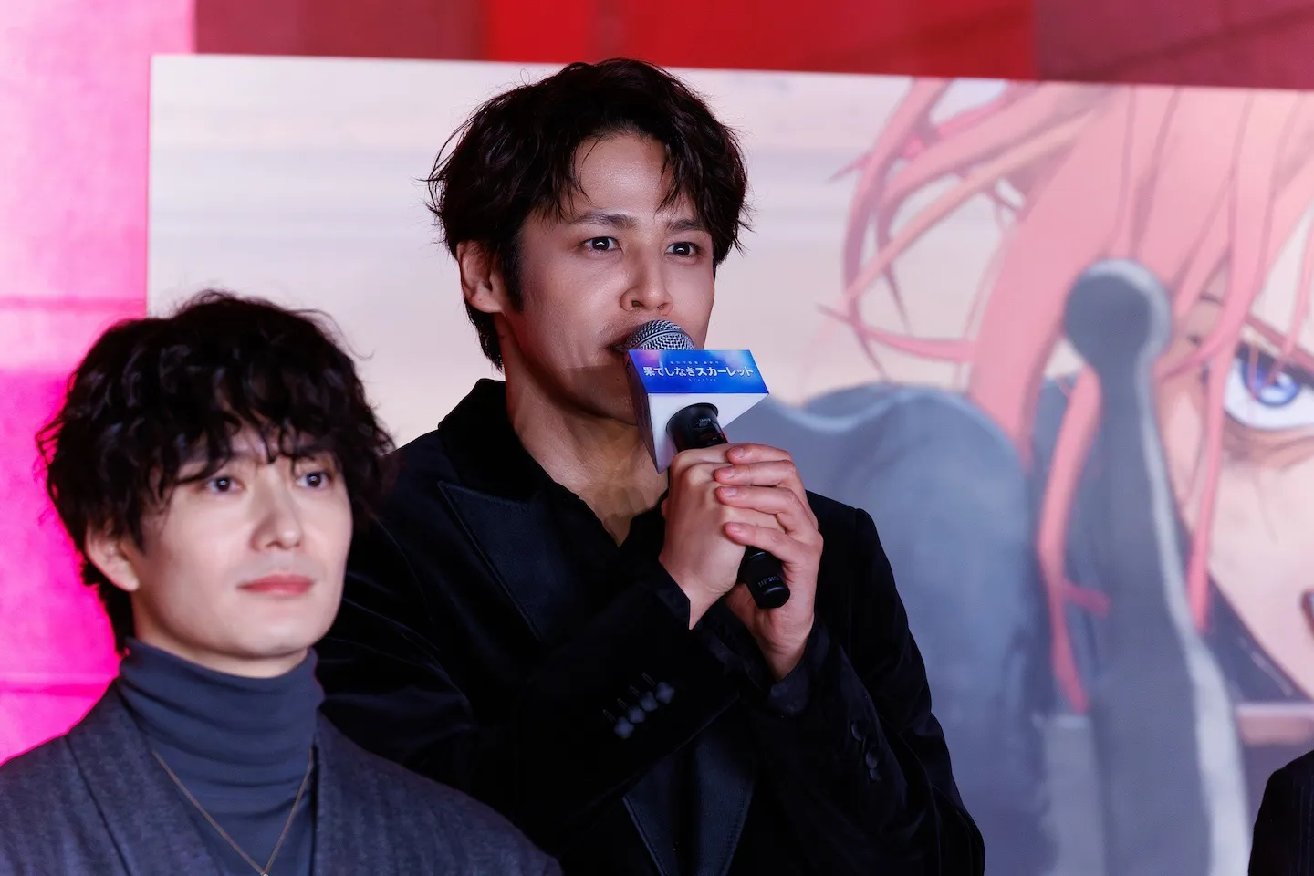 スカーレットは、国王である父を殺した敵への復讐を誓い、現代からやってきた看護師の青年・聖と出会って“死者の国”を彷徨う。芦田が「“死者の国”では、空との境目が海のようになっていて、妄想が膨らむ」と注目するべき映像について触れると、監督は「行ったことがない世界ですので。死者の国と言っても、行ってみたい地獄のようになったら素敵なんじゃないかと」と映像表現の工夫について伝えた。