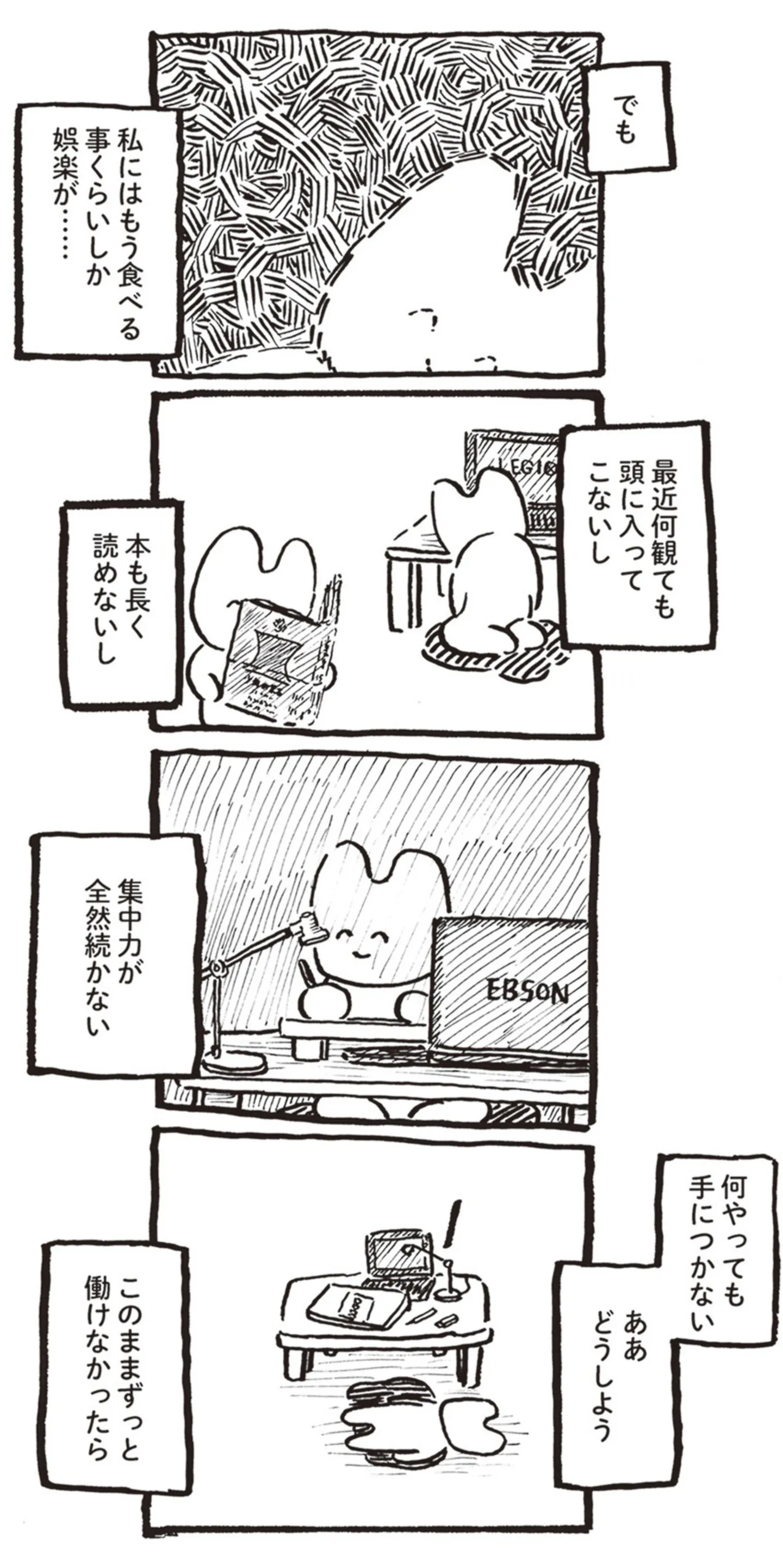 お金がないのにフードデリバリー。休職中、唯一の娯楽は食べること/君のためなら生きてもいいかな マンガ 公開日:2025/12/4 この連載を最初から読む→ わたしの宇宙⑥ わたしの宇宙⑦ <第14回に続く> 本作品をAmazon(電子)で読む > 本作品をRenta!で読む > 本作品をebookjapanで読む > 本作品をBOOK☆WALKERで読む > « 1 2 あわせて読みたい 【漫画】『君のためなら生きてもいいかな ハムスターのうにさんと私』を第1回から読む 【漫画】『サレた私は夫の墓へ』を読む 【漫画】『鼻腔癌になった話』を読む 【漫画】『ただのぽんこつ母さんだと思っていたらADHDグレーでした。』を読む 【漫画】『発達障害が理解されにくいワケを自分で考えてみた』を読む 最新マンガと話題の書籍を無料で試し読み! 前の回 一覧 人気の連載 次の回 君のためなら生きてもいいかな ハムスターのうにさんと私【電子特典付き】 試し読み *電子書籍ストアBOOK☆WALKERへ移動します