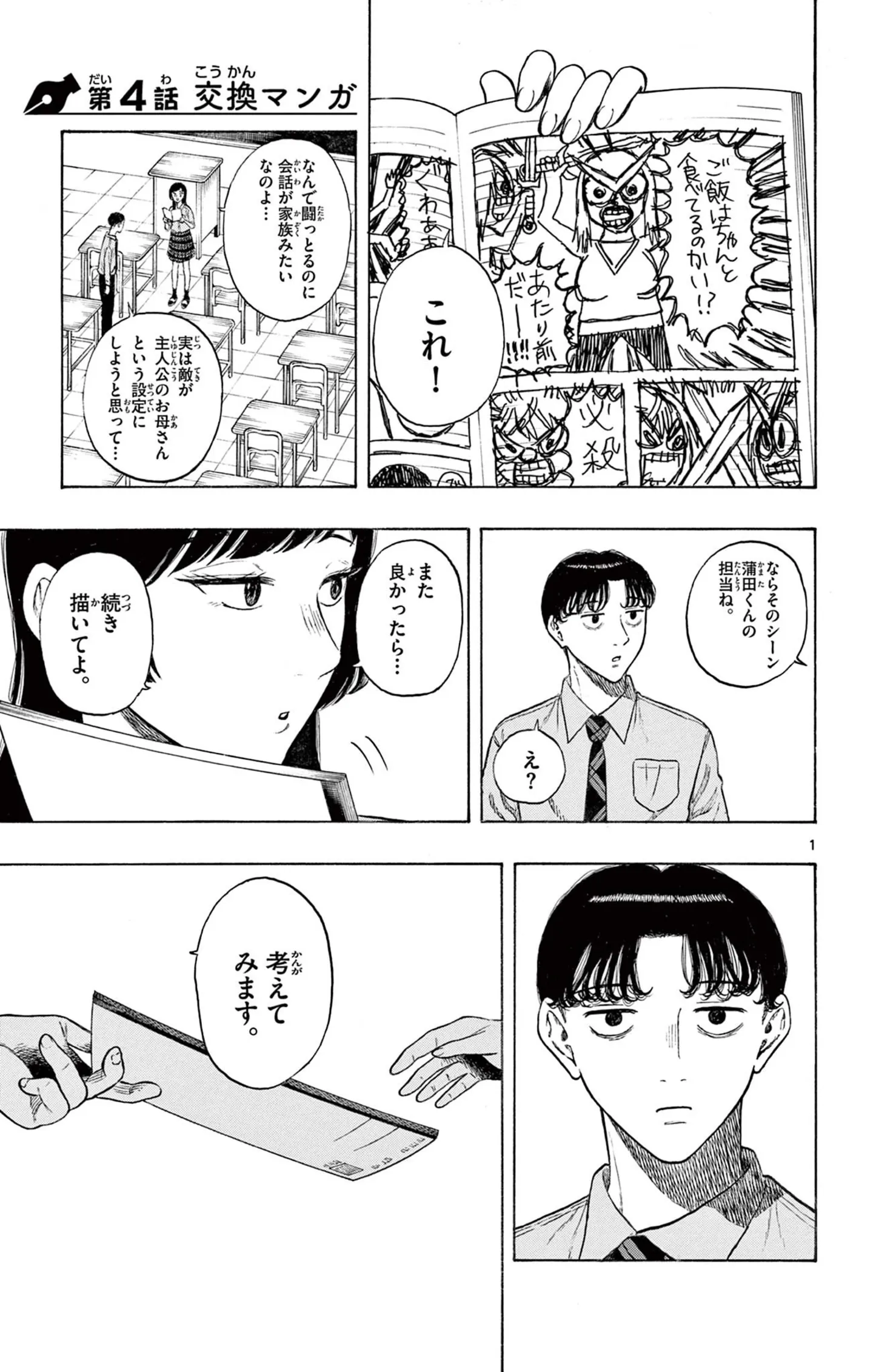 違う方向を向いている男女の進路。交換マンガで培った友情と、募っていくマンガへの想い/かくかまた④ マンガ 公開日:2025/11/30 この連載を最初から読む→ 『かくかまた』(くさかべ ゆうへい/小学館)第4回【全13回】 「どうして蒲田が私のマンガ読んどるの……?」学校でひっそりとマンガを描く荒川三咲と、廊下でも歩きながら勉強する、勉強三昧の蒲田三平。ある日、マンガを描いていたノートを机に置き忘れたことをきっかけに、二人は交流を深めていく。荒川との出会いによって気づく、蒲田の「本当にやりたいこと」とは? 第2巻は11月18日に発売予定! マンガを中心にして巻き起こるクセ強青春コメディ『かくかまた』をお楽しみください! 【30日間無料】Amazonの読み放題をチェック > 本作品をAmazon(電子)で読む > 本作品をRenta!で読む > >> 次のページに続く 1 2 3 4 > あわせて読みたい 【漫画】『かくかまた』を第1回から読む 【漫画】『娘を妊娠させたのは誰ですか?』を読む 【漫画】『バイトの古森くん』を読む 最新マンガと話題の書籍を無料で試し読み! 前の回 一覧 人気の連載 次の回 かくかまた(1) (少年サンデーコミックス) Amazon(電子) Amazon 楽天(電子) Renta! ebookjapan ブックライブ コミックシーモア DMMブックス U-NEXT かくかまた(2) (少年サンデーコミックス) Amazon(電子) Amazon 楽天(電子)