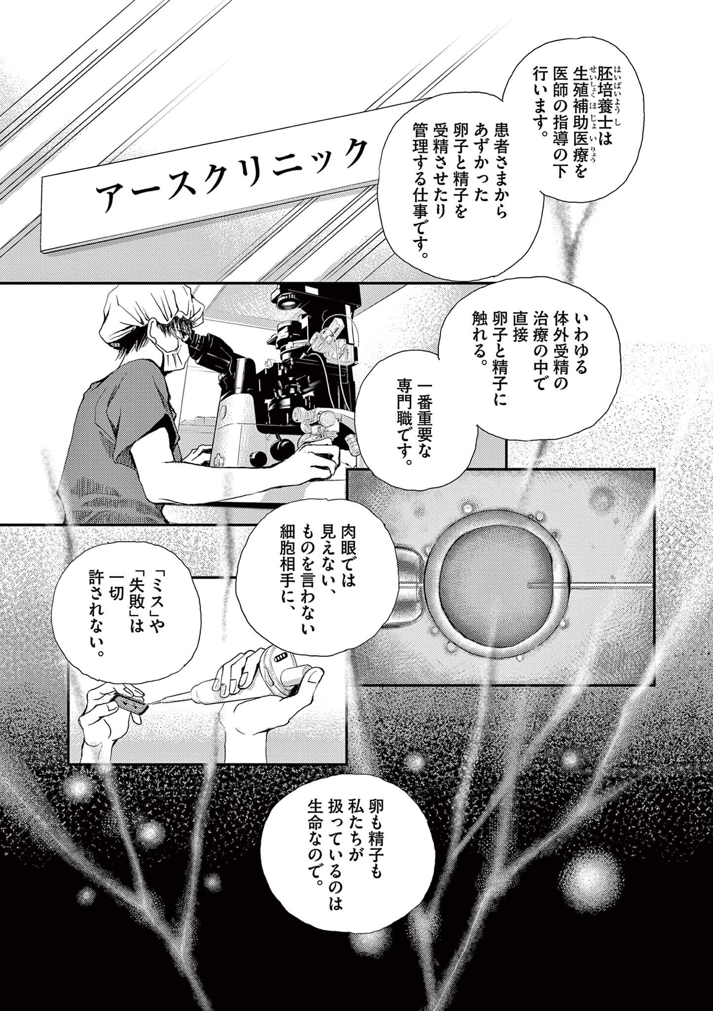 生命そのものを扱う仕事・胚培養士。肉眼ではみえない細胞相手に、ミスは許されない/胚培養士ミズイロ① 8枚目/全19枚