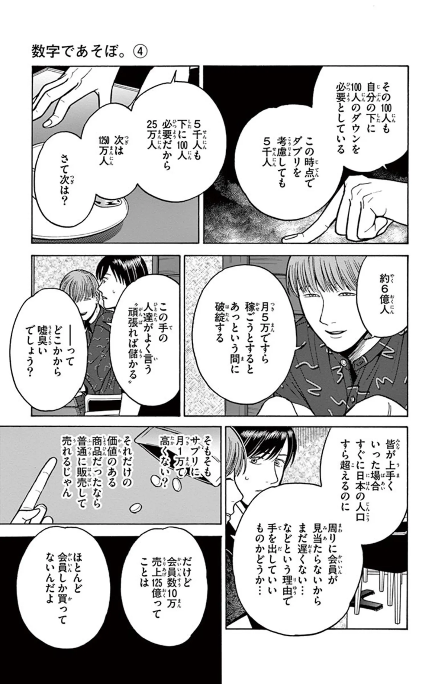 これ、マルチじゃない? 勧誘に対し指数関数を使ってマジレスする友人/数字であそぼ② マンガ 公開日:2025/11/29 この連載を最初から読む→ <続きは本書でお楽しみください> 本作品をAmazon(電子)で読む > 本作品をRenta!で読む > 本作品をebookjapanで読む > 本作品をBOOK☆WALKERで読む > « 1 2 3 4 あわせて読みたい 【漫画】『数字であそぼ』を第1回から読む 【漫画】『痔だと思ったら大腸がんステージ4でした 標準治療を旅と漫画で乗り越えてなんとか経過観察になるまで』を読む 【漫画】『愛され女子でスミマセン』を読む 最新マンガと話題の書籍を無料で試し読み! 前の回 一覧 人気の連載 次の回 数字であそぼ。(1) (フラワーコミックスα) Amazon(電子) Amazon 楽天(電子) Renta! ebookjapan ブックライブ コミックシーモア DMMブックス U-NEXT 数字であそぼ。(14) (フラワーコミックスα) Amazon(電子) Amazon 楽天(電子)