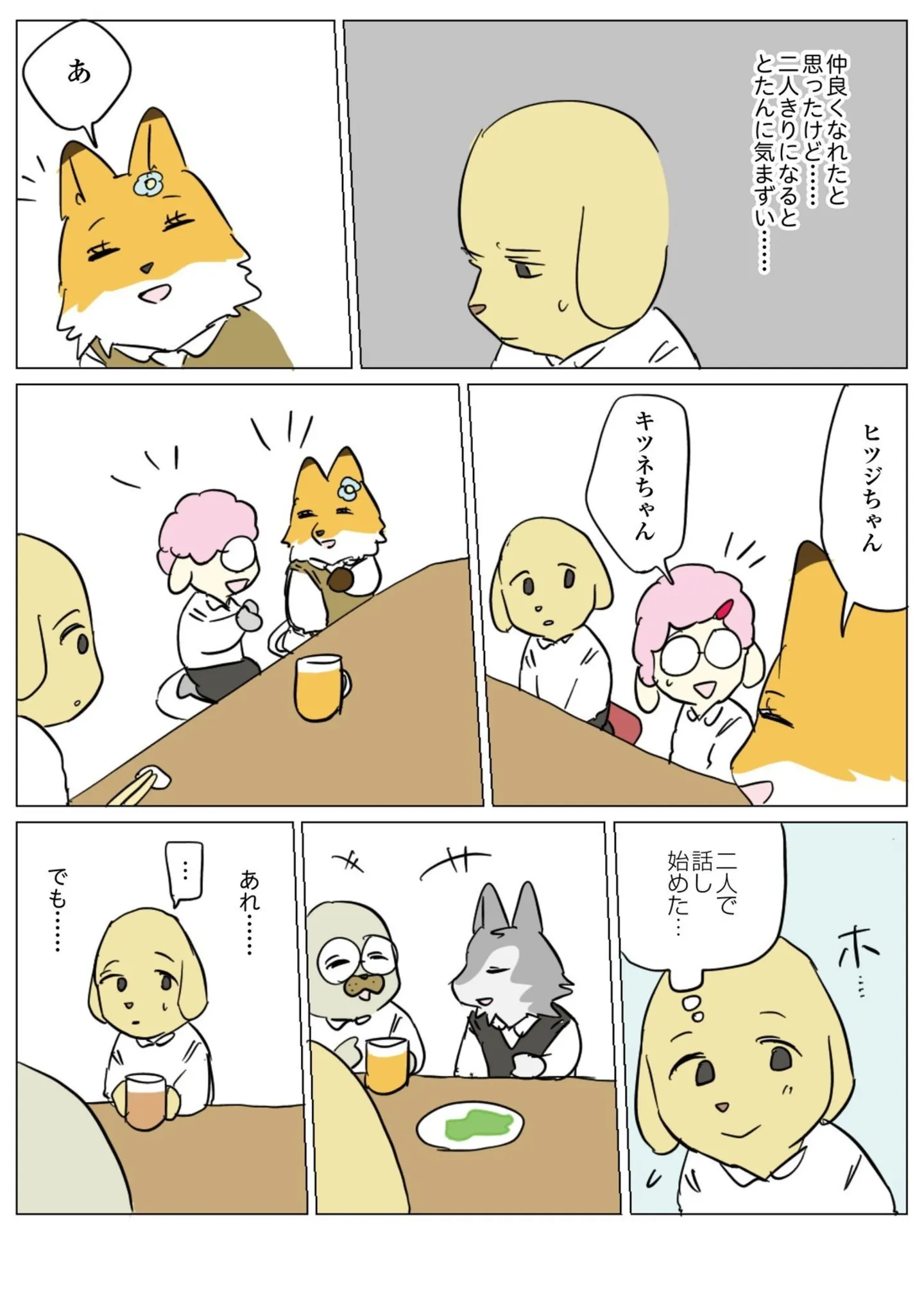 飲み会で気づくと独りぼっち。主任が話しかけてくれたけど…実はけっこう酔ってる!?/働く!くよくよ犬⑭