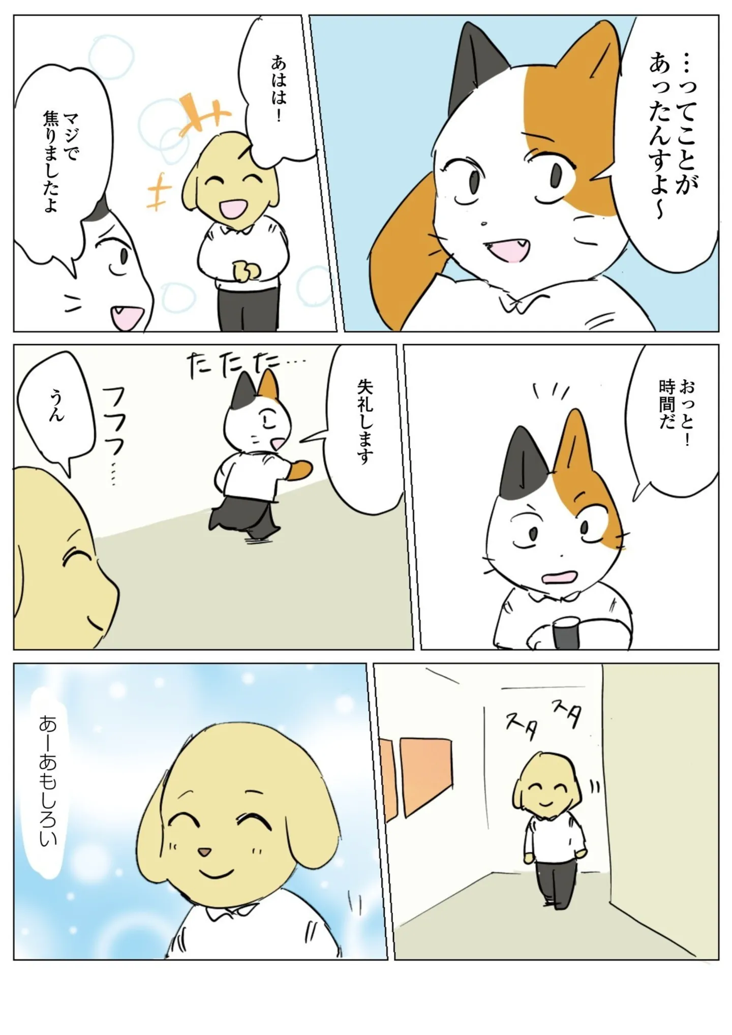 後輩との会話を思い出して、ひとり笑顔に。そのまま同僚とすれ違ってしまい…/働く!くよくよ犬㉓