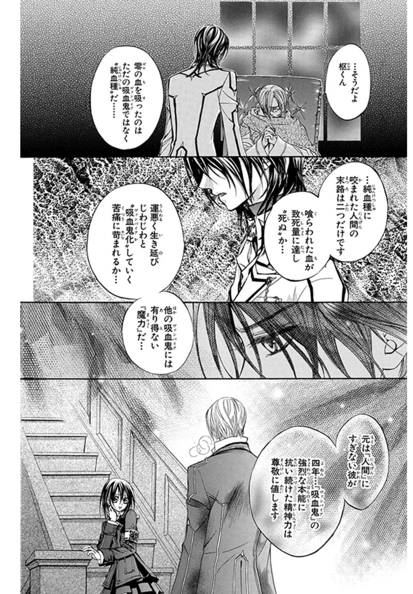 幼い頃からそばにいた彼が抱えていた秘密。純血種の吸血鬼の牙にかかった人間がたどる恐ろしい運命とは/ヴァンパイア騎士⑨ マンガ 公開日:2025/12/13 この連載を最初から読む→ <第10回に続く> 本作品をAmazon(電子)で読む > 本作品をRenta!で読む > 本作品をebookjapanで読む > 本作品をBOOK☆WALKERで読む > « 1 2 3 4 あわせて読みたい 【本作のレビューを読む】千年に及ぶ愛と血のドラマが、とうとう完結! 優姫、枢、零の美しき三角関係の行く末は――『ヴァンパイア騎士』 【前話を読む】悪い吸血鬼に家族を奪われた冬の夜。両親が襲われた理由は、数多くの吸血鬼を倒してきた報復だった/ヴァンパイア騎士 【第1回から読む】吸血鬼は本当に存在する。雪の中で襲われそうになった幼い日、助けてくれた男の子の正体は…/ヴァンパイア騎士 【漫画】『夫がいても誰かを好きになっていいですか』を読む 最新マンガと話題の書籍を無料で試し読み! 前の回 一覧 人気の連載 次の回 ヴァンパイア騎士(ナイト) 1 (花とゆめコミックス) 試し読み *電子書籍ストアBOOK☆WALKERへ移動します ヴァンパイア騎士memories 11 ボイスドラマ&小冊子付き特装版 (花とゆめコミックス)