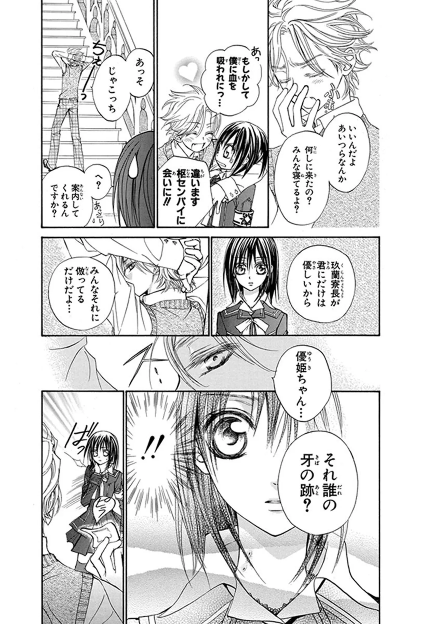 誰にも知られてはならない昨夜の出来事。首筋には吸血鬼に血を吸われた証が残っていて…/ヴァンパイア騎士⑫ マンガ 更新日:2025/12/16 この連載を最初から読む→ <第13回に続く> 本作品をAmazon(電子)で読む > 本作品をRenta!で読む > 本作品をebookjapanで読む > 本作品をBOOK☆WALKERで読む > « 1 2 3 4 あわせて読みたい 【本作のレビューを読む】千年に及ぶ愛と血のドラマが、とうとう完結! 優姫、枢、零の美しき三角関係の行く末は――『ヴァンパイア騎士』 【前話を読む】人を傷つけることを恐れて学園を去ろうとした彼。その覚悟の裏に隠された本音とは…/ヴァンパイア騎士 【第1回から読む】吸血鬼は本当に存在する。雪の中で襲われそうになった幼い日、助けてくれた男の子の正体は…/ヴァンパイア騎士 【漫画】『うちの上司は見た目がいい』を読む 最新マンガと話題の書籍を無料で試し読み! 前の回 一覧 人気の連載 次の回 ヴァンパイア騎士(ナイト) 1 (花とゆめコミックス) 試し読み *電子書籍ストアBOOK☆WALKERへ移動します ヴァンパイア騎士memories 11 ボイスドラマ&小冊子付き特装版 (花とゆめコミックス)