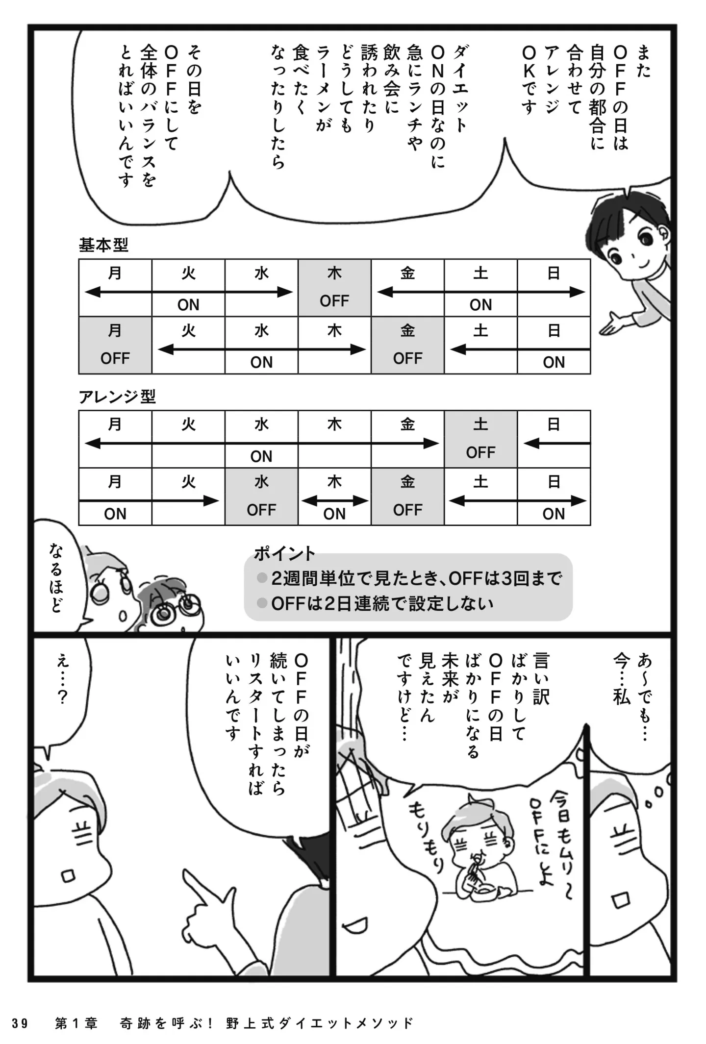 続けやすい「3日坊主ダイエット」の基本ルール! シンプルにこれだけでいいんですか?/アラフィフ母さんが3か月で7㎏痩せた! 奇跡の仕組みダイエット⑥ マンガ 公開日:2025/12/18 この連載を最初から読む→ <第7回に続く> 本作品をAmazon(電子)で読む > 本作品をBOOK☆WALKERで読む > « 1 2 あわせて読みたい 【漫画】『挑戦マンガ アラフィフ母さんが3か月で7㎏痩せた! 奇跡の仕組みダイエット』を第1回から読む スイーツや揚げ物を食べてもOK! “予約のとれないダイエットコーチ”が教える「三日坊主ダイエット」って? エキストラで女優気分、マッスルショーで大はしゃぎ… 800万アクセスの人気主婦ブロガー・カータンさんが綴る、50代の楽しい生き方 【漫画】『グランプリは私ですけど何か?~自己肯定モンスターのミスコン無双~』を読む 【漫画】『会社がツライ なりたい自分を見つけるまで』を読む 最新マンガと話題の書籍を無料で試し読み! 前の回 一覧 人気の連載 次の回 挑戦マンガ アラフィフ母さんが3か月で7㎏痩せた! 奇跡の仕組みダイエット 試し読み *電子書籍ストアBOOK☆WALKERへ移動します