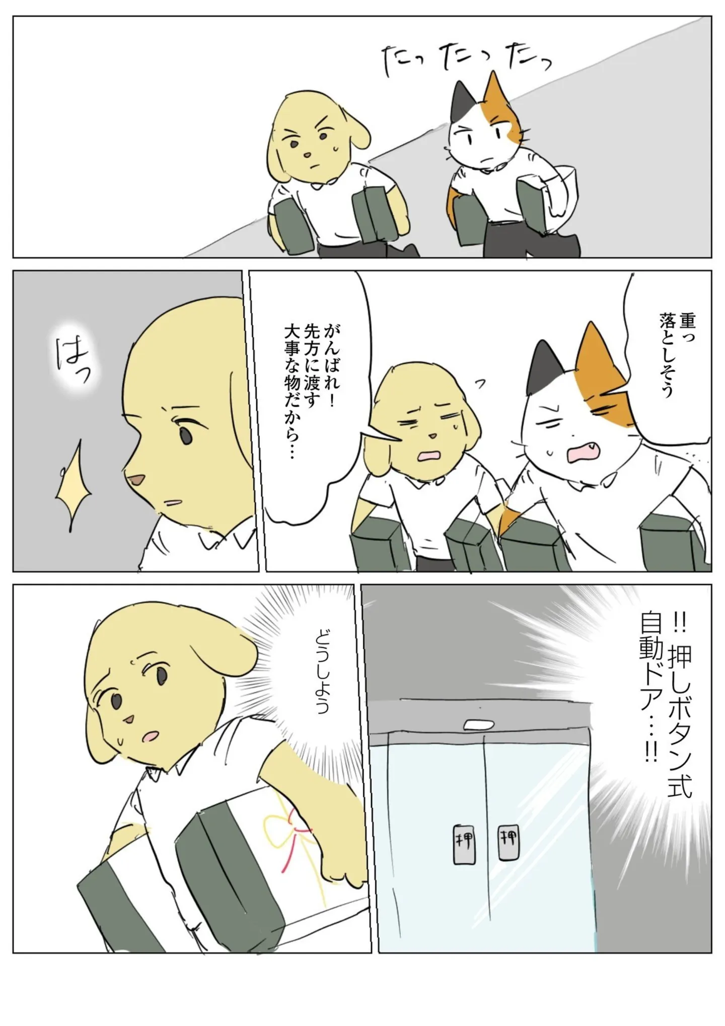 「頭」を使って状況を打破! 両手が塞がってる時に、ドアを開く方法/働く!くよくよ犬㉞