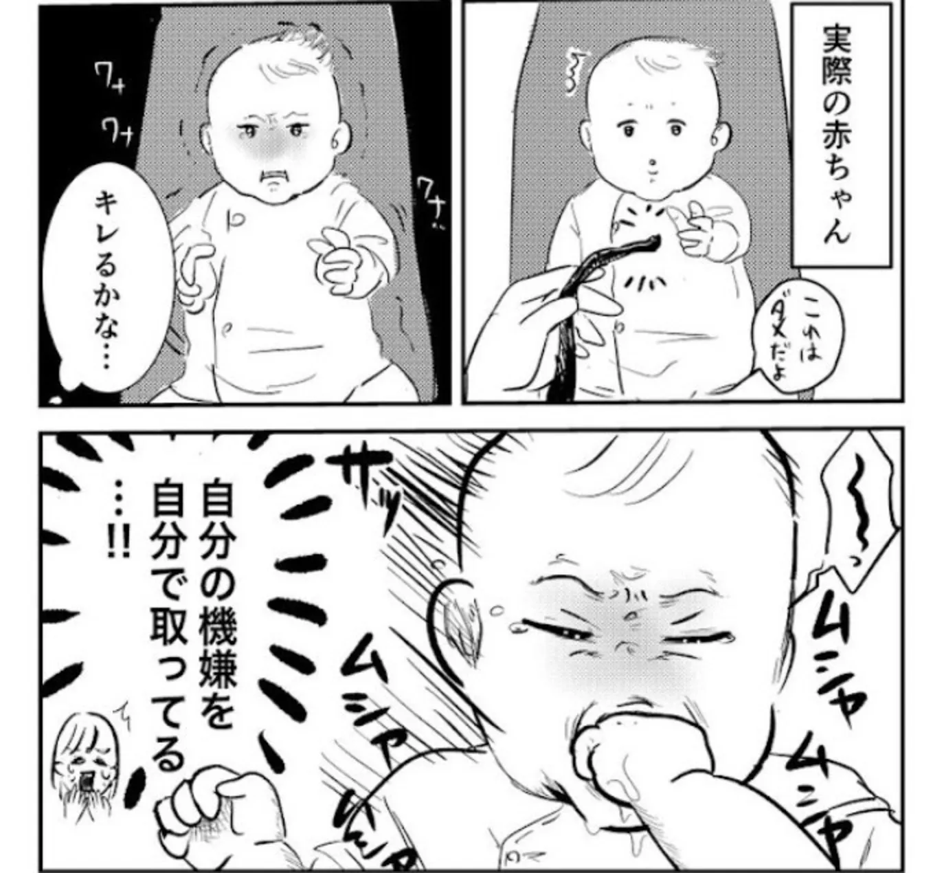 グッと我慢している表情がかわいい! 赤ちゃんあるあるを描いた育児記録に子育てママからの共感多数!【漫画家インタビュー】
