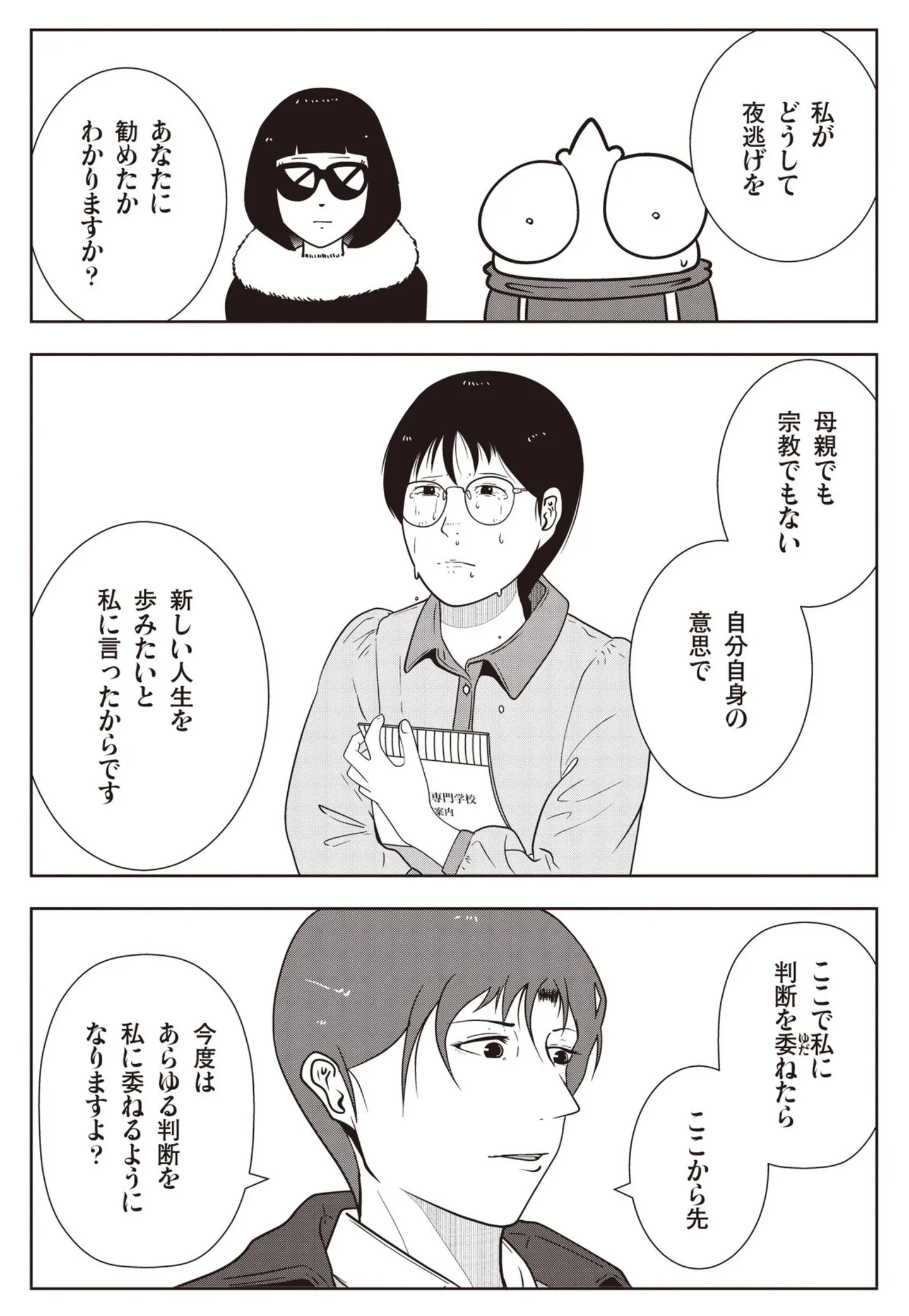 「お母さん一人ぼっちになっちゃう」宗教にのめり込む母を恨み、夜逃げする二世信者の複雑な感情/夜逃げ屋日記2⑯ マンガ 公開日:2025/12/26 この連載を最初から読む→ <第17回に続く> 本作品をAmazon(電子)で読む > 本作品をRenta!で読む > 本作品をebookjapanで読む > 本作品をBOOK☆WALKERで読む > « 1 2 3 4 5 あわせて読みたい 【漫画】『夜逃げ屋日記(1~4巻)』を第1回から読む 【漫画】『マダムたちのルームシェア』を読む 【漫画】『今日もネコ様の圧が強い』を読む 最新マンガと話題の書籍を無料で試し読み! 前の回 一覧 人気の連載 次の回 夜逃げ屋日記 (コミックエッセイ) 試し読み *電子書籍ストアBOOK☆WALKERへ移動します 夜逃げ屋日記2 (コミックエッセイ) 試し読み *電子書籍ストアBOOK☆WALKERへ移動します 夜逃げ屋日記3 (コミックエッセイ) 試し読み *電子書籍ストアBOOK☆WALKERへ移動します 夜逃げ屋日記4 (コミックエッセイ) 試し読み *電子書籍ストアBOOK☆WALKERへ移動します 夜逃げ屋日記5 (コミックエッセイ) 試し読み *電子書籍ストアBOOK☆WALKERへ移動します