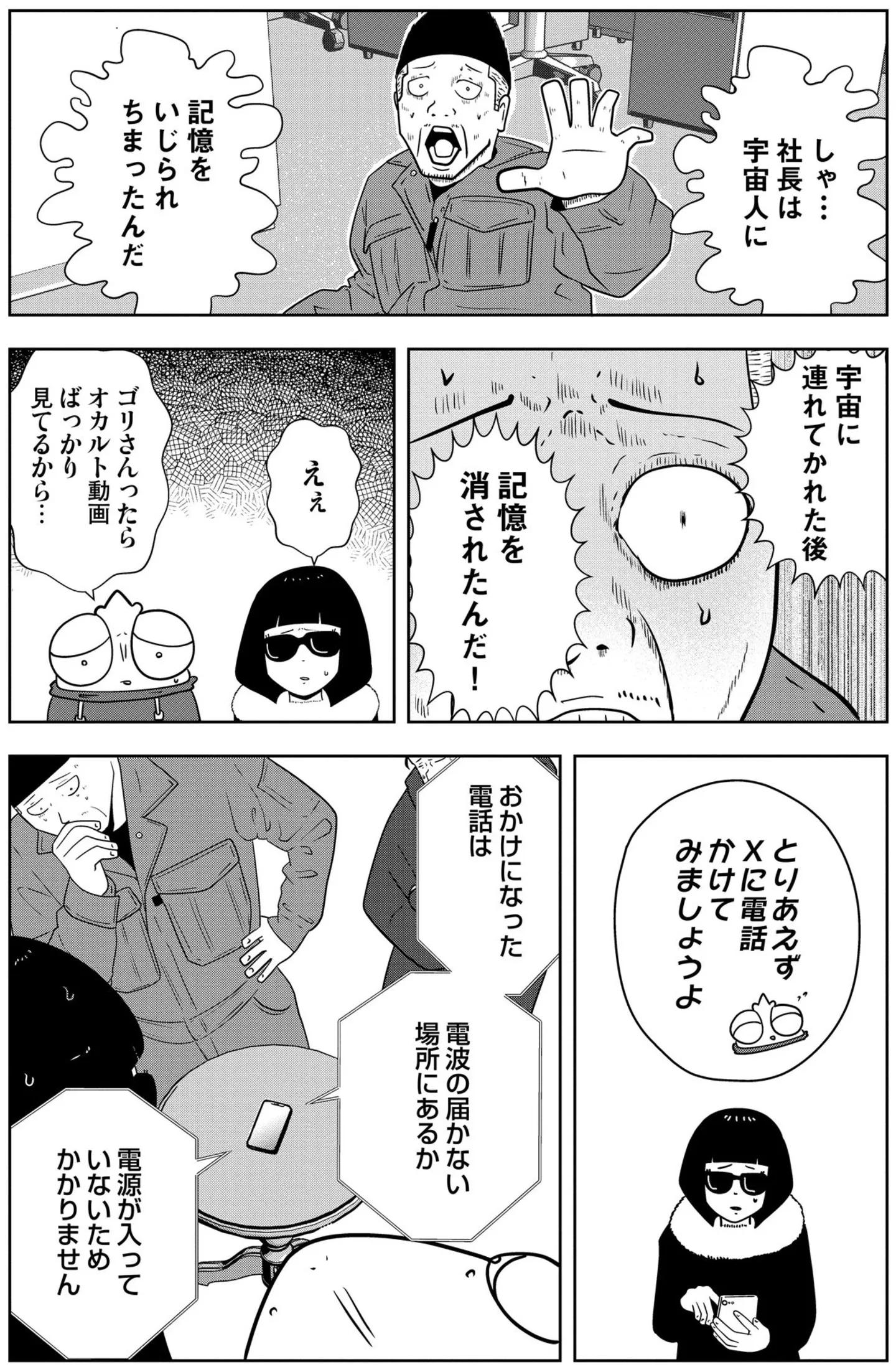 宇宙人・Xと名乗る人物から電話。宇宙船で迎えに行くと宣言された日、夜逃げ屋の女社長の身に何が!?/夜逃げ屋日記3㉖ マンガ 公開日:2026/1/5 この連載を最初から読む→ <第27回に続く> 本作品をAmazon(電子)で読む > 本作品をRenta!で読む > 本作品をebookjapanで読む > 本作品をBOOK☆WALKERで読む > « 1 2 3 4 あわせて読みたい 【漫画】『夜逃げ屋日記(1~4巻)』を第1回から読む 【漫画】『家族全員でいじめと戦うということ。』を読む 【漫画】『放置子の面倒を見るのは誰ですか?』を読む 最新マンガと話題の書籍を無料で試し読み! 前の回 一覧 人気の連載 次の回 夜逃げ屋日記 (コミックエッセイ) 試し読み *電子書籍ストアBOOK☆WALKERへ移動します 夜逃げ屋日記2 (コミックエッセイ) 試し読み *電子書籍ストアBOOK☆WALKERへ移動します 夜逃げ屋日記3 (コミックエッセイ) 試し読み *電子書籍ストアBOOK☆WALKERへ移動します 夜逃げ屋日記4 (コミックエッセイ) 試し読み *電子書籍ストアBOOK☆WALKERへ移動します 夜逃げ屋日記5 (コミックエッセイ) 試し読み *電子書籍ストアBOOK☆WALKERへ移動します