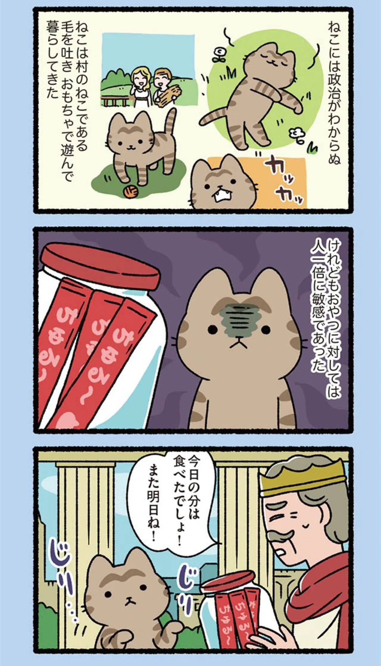 誰もが知る昔話や逸話を、ふてぶてしくも愛らしい猫たちでゆる〜く再構築! クスッと笑えて癒やされる、猫好き必見の4コマパロディ【書評】 68枚目/全222枚